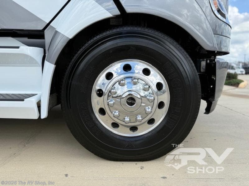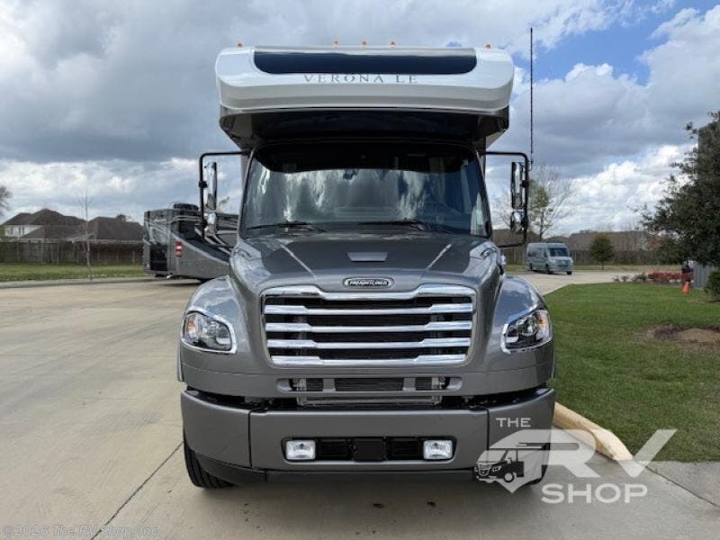 With any Verona LE Super C diesel motorhome by Renegade, you will be wowed by all the luxury features. The 2" vacuum laminated sidewalls feature welded aluminum framing for added support, and the 1.5" high density foam insulation in the sidewalls and roof means you can travel all year long in any season. The captain will love how easy it will be to drive with the Allison 3200TRV electronic 6-speed transmission, plus there are rear and side view cameras for easy parking and an upgraded cab sound system to keep the tunes going. Each model includes dual 15,000 BTU roof A/C pumps, an Aqua-Hot 450D hydronic water and zone heating system, plus MaxxAir power vents to keep you comfortable all year long. All of your power needs will be met with an 8kW Onan Quiet diesel generator, 3,000w True Sine wave inverter, (2) 330Ah AGM house batteries, and (3) 200W solar panels. Inside, there are three modern decor options to choose from, along with solid surface countertops, grouted tile backsplash, Maple hardwood cabinetry, and many more comforts of home!