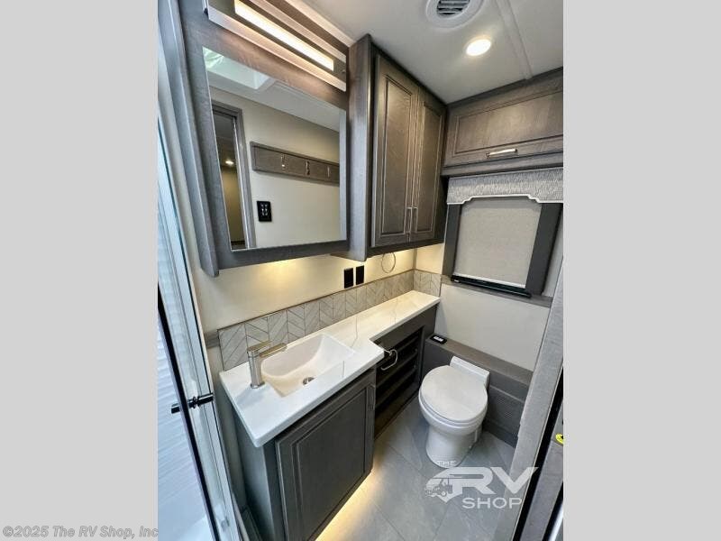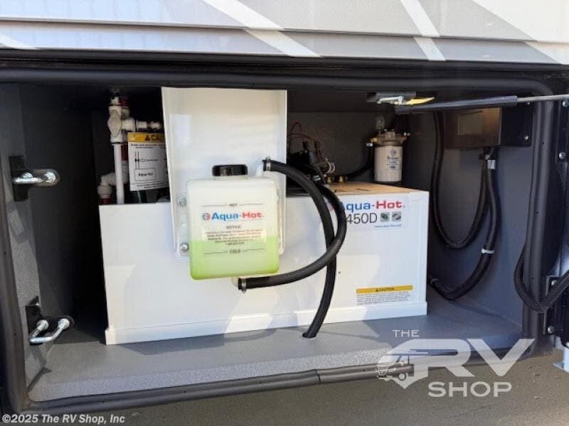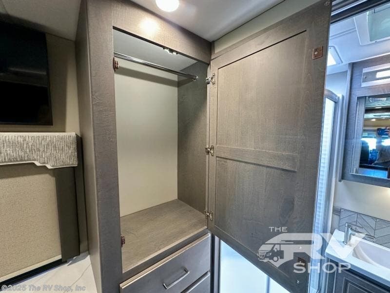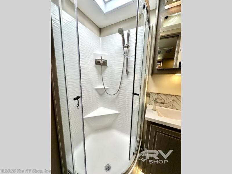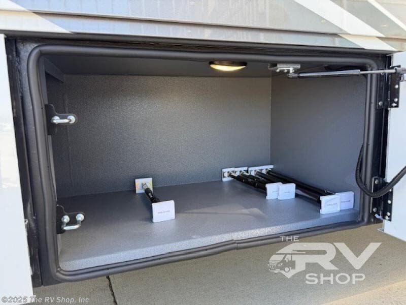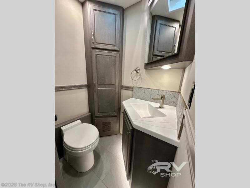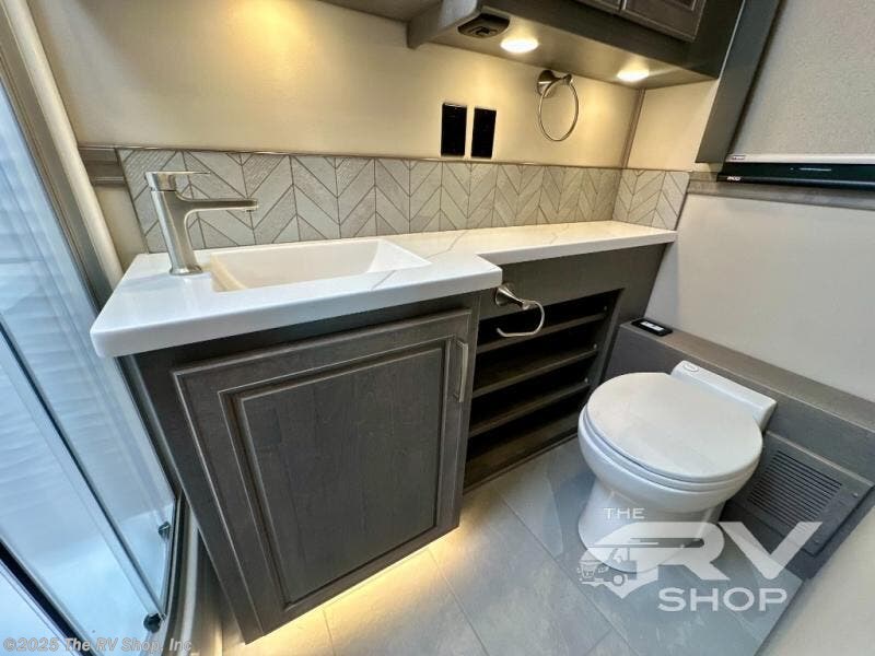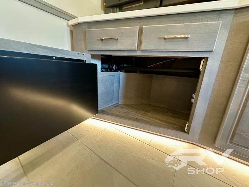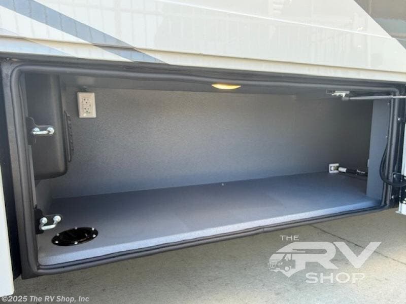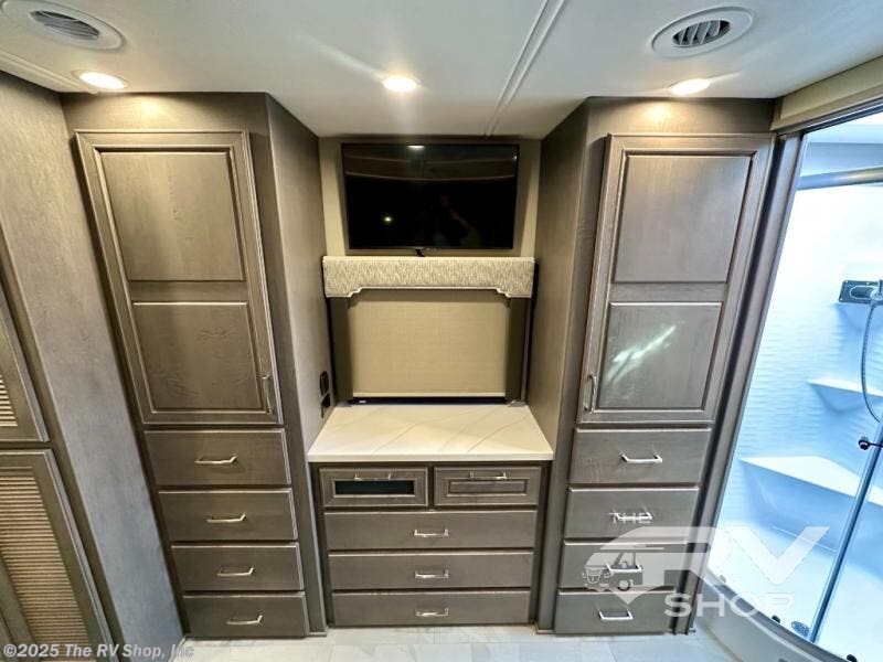 You and your spouse can dream about your next adventure while sleeping on your own memory foam mattress in the master suite with a full bathroom including a radius shower and linen storage. If you have overnight guests, they can sleep on the sofa sleeper plus the dinette once converted for bedtime. And the mid-coach half bath will be all theirs. The chef-inspired kitchen offers a convection microwave, a recessed two burner induction cooktop and a French door residential refrigerator, plus more! You can entertain inside while watching the 50" 4K Smart LED TV or outside under the electric awning while enjoying the exterior 43" 4K LED TV with USB charging. There are so many more luxury and tech features to enjoy, plus a few options to add if you wish. Take a look at the list.