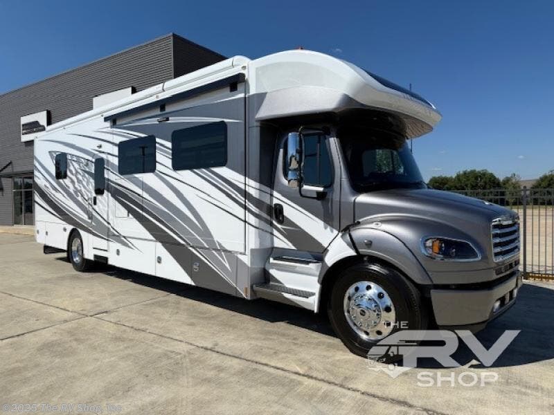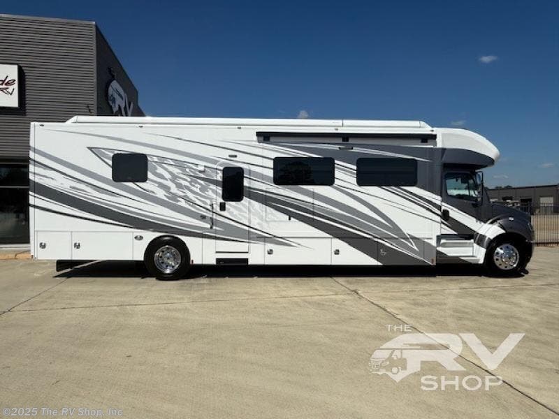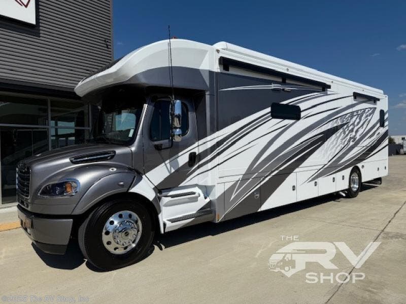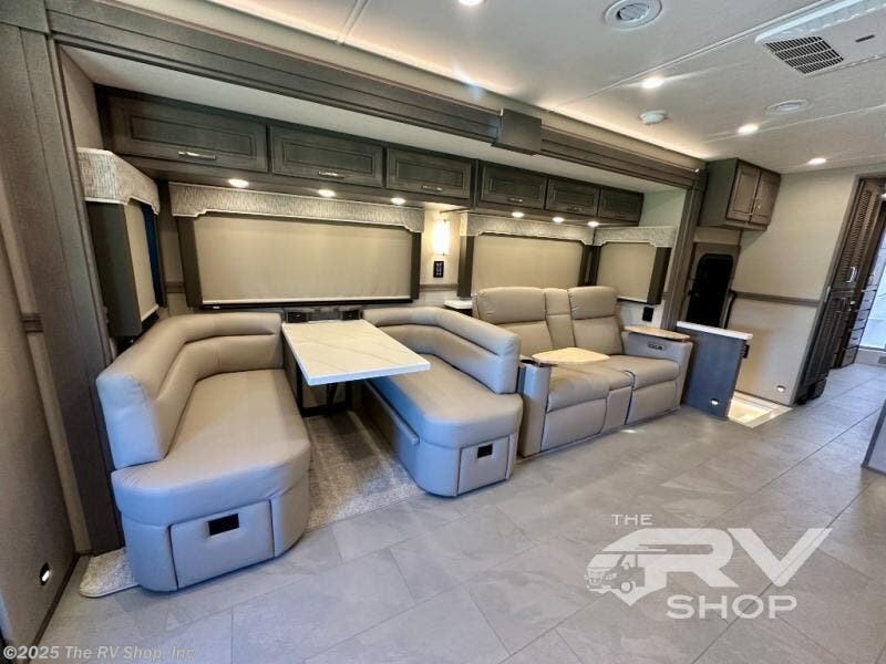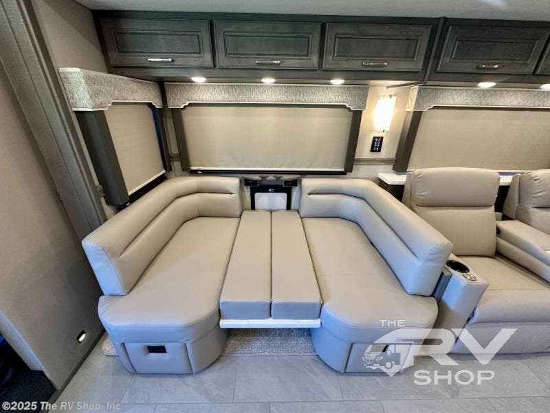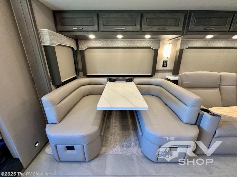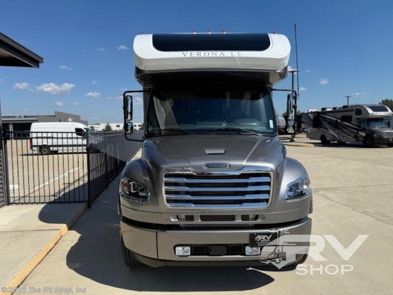 \With any Verona LE Super C diesel motorhome by Renegade, you will be wowed by all the luxury features. The 2" vacuum laminated sidewalls feature welded aluminum framing for added support, and the 1.5" high density foam insulation in the sidewalls and roof means you can travel all year long in any season. The captain will love how easy it will be to drive with the Allison 3200TRV electronic 6-speed transmission, plus there are rear and side view cameras for easy parking and an upgraded cab sound system to keep the tunes going. Each model includes dual 15,000 BTU roof A/C pumps, an Aqua-Hot 450D hydronic water and zone heating system, plus MaxxAir power vents to keep you comfortable all year long. All of your power needs will be met with an 8kW Onan Quiet diesel generator, 3,000w True Sine wave inverter, (2) 330Ah AGM house batteries, and (3) 200W solar panels. Inside, there are three modern decor options to choose from, along with solid surface countertops, grouted tile backsplash, Maple hardwood cabinetry, and many more comforts of home!