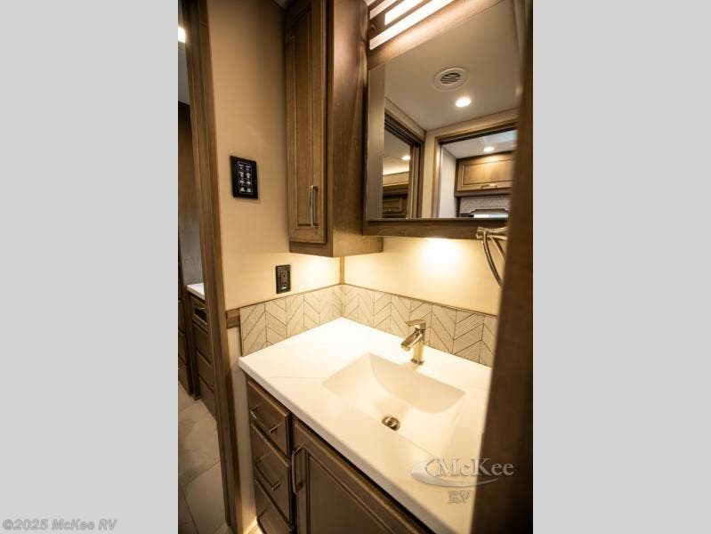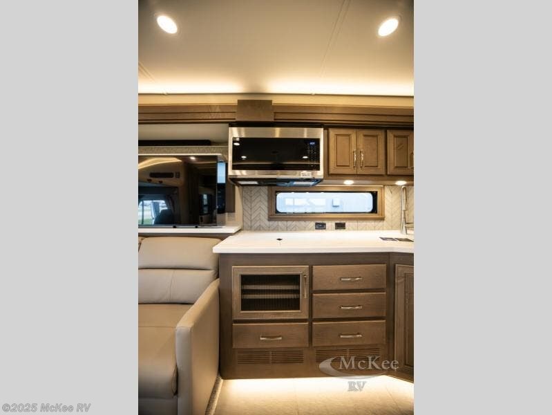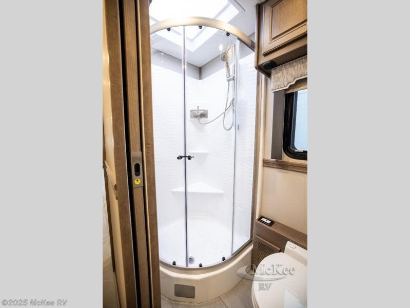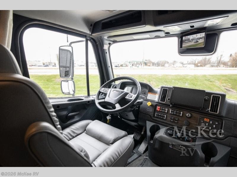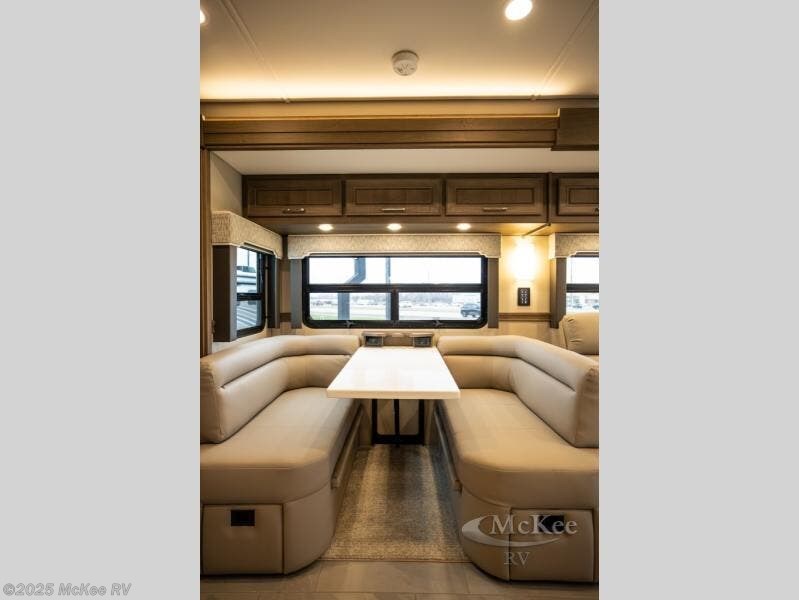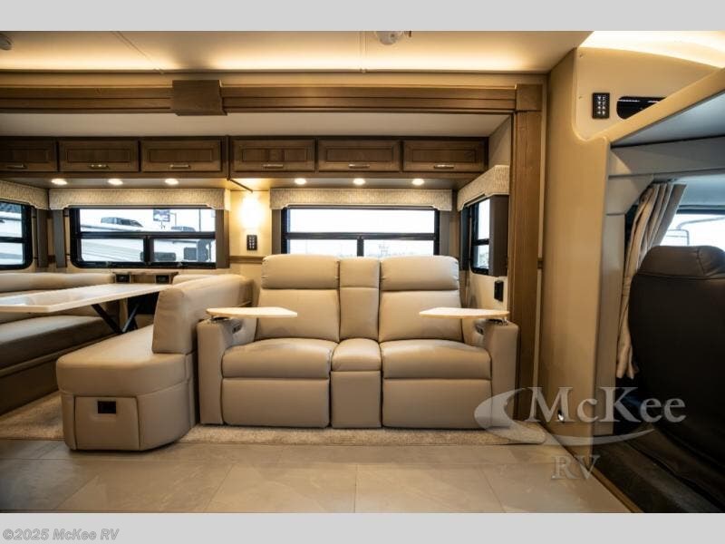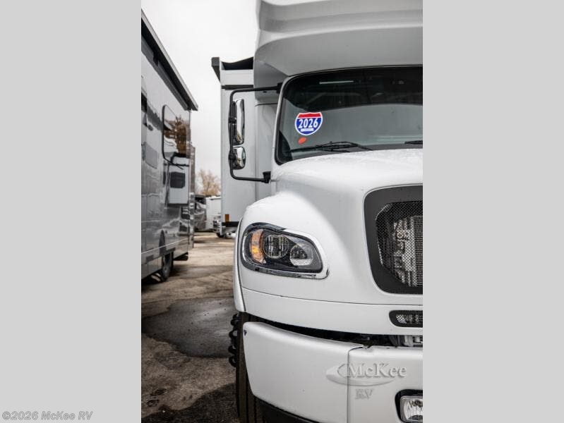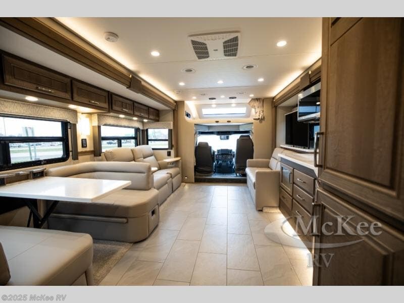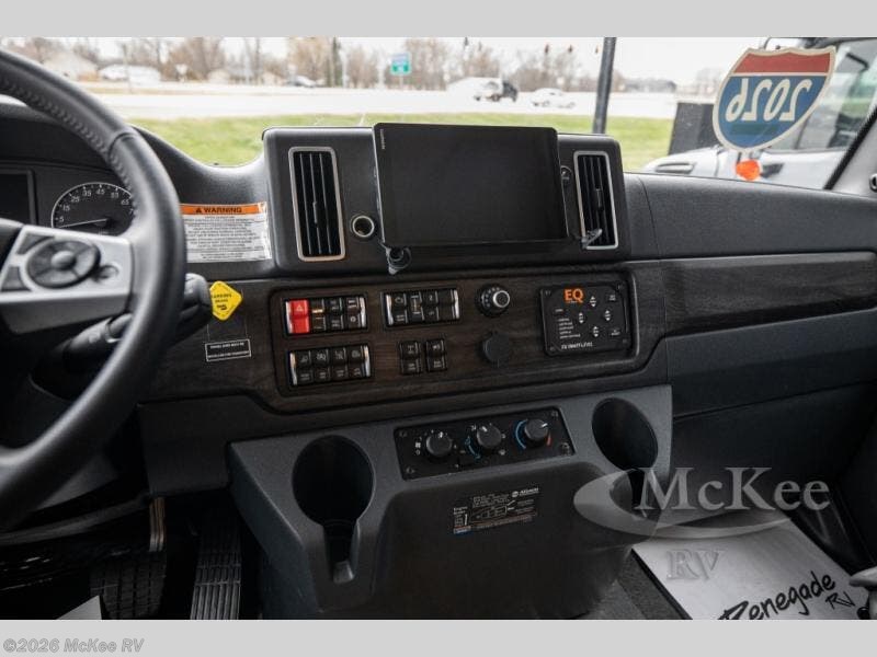 With any Verona LE Super C diesel motorhome by Renegade, you will be wowed by all the luxury features. The 2" vacuum laminated sidewalls feature welded aluminum framing for added support, and the 1.5" high density foam insulation in the sidewalls and roof means you can travel all year long in any season. The captain will love how easy it will be to drive with the Allison 3200TRV electronic 6-speed transmission, plus there are rear and side view cameras for easy parking and an upgraded cab sound system to keep the tunes going. Each model includes dual 15,000 BTU roof A/C pumps, an Aqua-Hot 450D hydronic water and zone heating system, plus MaxxAir power vents to keep you comfortable all year long. All of your power needs will be met with an 8kW Onan Quiet diesel generator, 3,000w True Sine wave inverter, (2) 330Ah AGM house batteries, and (3) 200W solar panels. Inside, there are three modern decor options to choose from, along with solid surface countertops, grouted tile backsplash, Maple hardwood cabinetry, and many more comforts of home!
