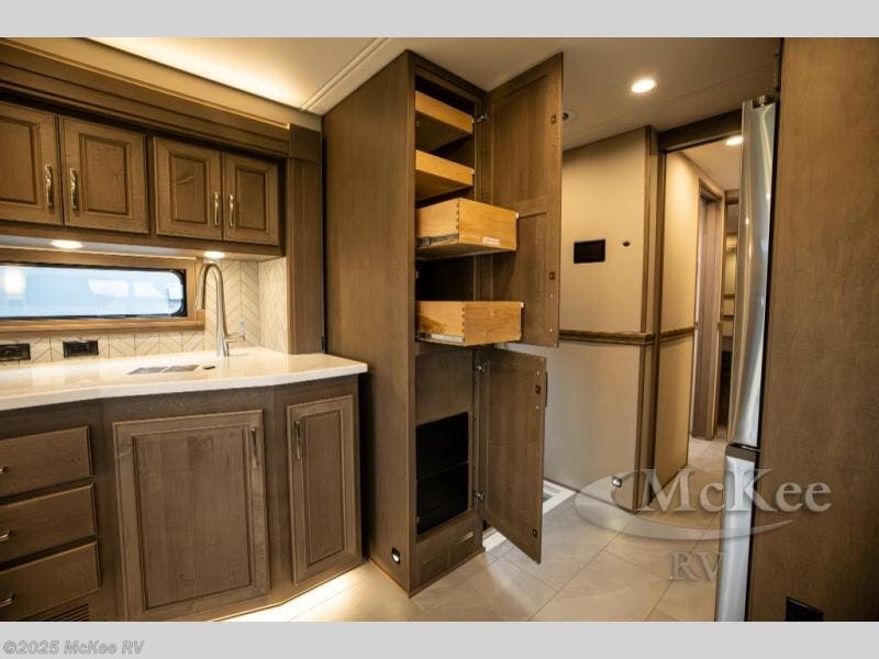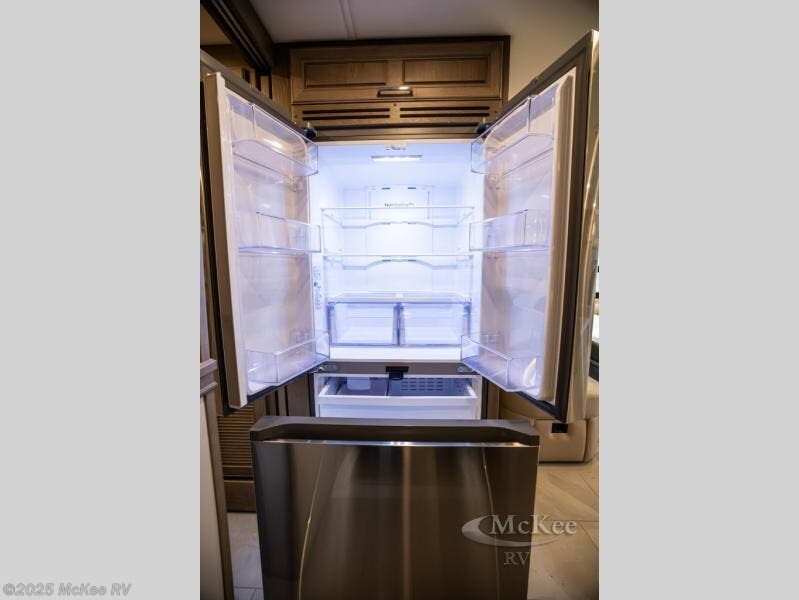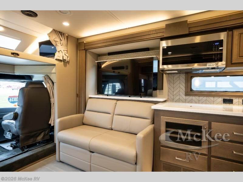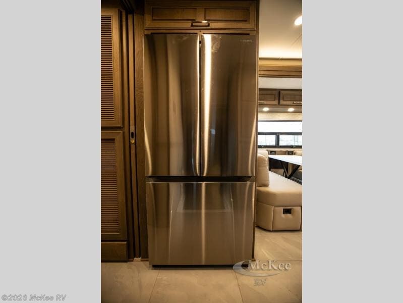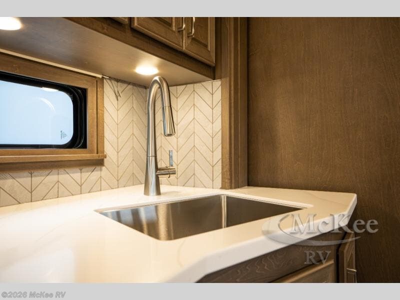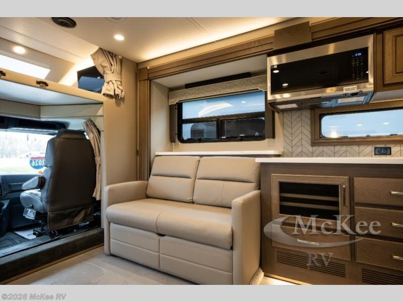 This family-friendly coach offers sleeping space for six when you convert the hide-a-bed sofa, the second sofa and the booth dinette. The triple slides open up the living area and bedroom giving everyone lots of floor space to move about during the day and at night. The rear bedroom offers a memory foam mattress, a wardrobe and a 32" Smart LED TV. You will surely appreciate the split-style bathroom when trying to quickly get ready to shop in town or prepare for bed. You can make meals for everyone using the recessed two burner induction cooktop and convection microwave, and will also appreciate 18 cu. ft. French door residential refrigerator with stainless steel doors.