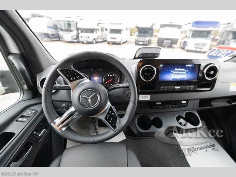 Luxury is in the details of each one of these Renegade Vienna Class C diesel motorhomes! They are built on a Mercedes-Benz Sprinter chassis, and include a four point hydraulic leveling system with app control, a 2000w true sine wave hybrid inverter, a 3.6KW LP generator with auto gen start, and a Winegard Connect rooftop OTA antenna with Wi-Fi and 5G ready. You will appreciate the Truma™ Comfort Plus tankless water heater when showering, the accent lighting at the galley countertop for style, and the USB charging in the living area, bedroom and kitchen to keep your electronics ready. The Maple hardwood cabinetry completes the luxurious décor throughout the inside. Make your selection today!