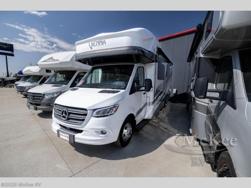 Luxury is in the details of each one of these Renegade Vienna Class C diesel motorhomes! They are built on a Mercedes-Benz Sprinter chassis, and include a four point hydraulic leveling system with app control, a 2000w true sine wave hybrid inverter, a 3.6KW LP generator with auto gen start, and a Winegard Connect rooftop OTA antenna with Wi-Fi and 5G ready. You will appreciate the Truma™ Comfort Plus tankless water heater when showering, the accent lighting at the galley countertop for style, and the USB charging in the living area, bedroom and kitchen to keep your electronics ready. The Maple hardwood cabinetry completes the luxurious décor throughout the inside. Make your selection today!