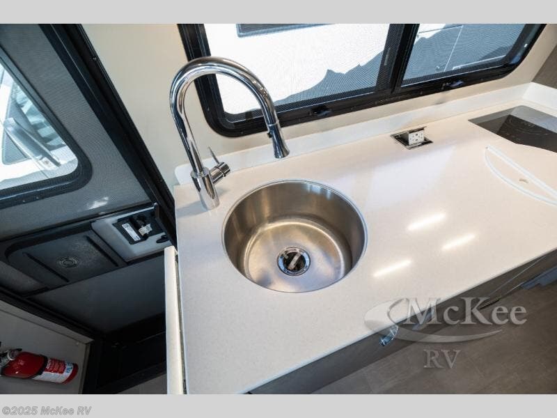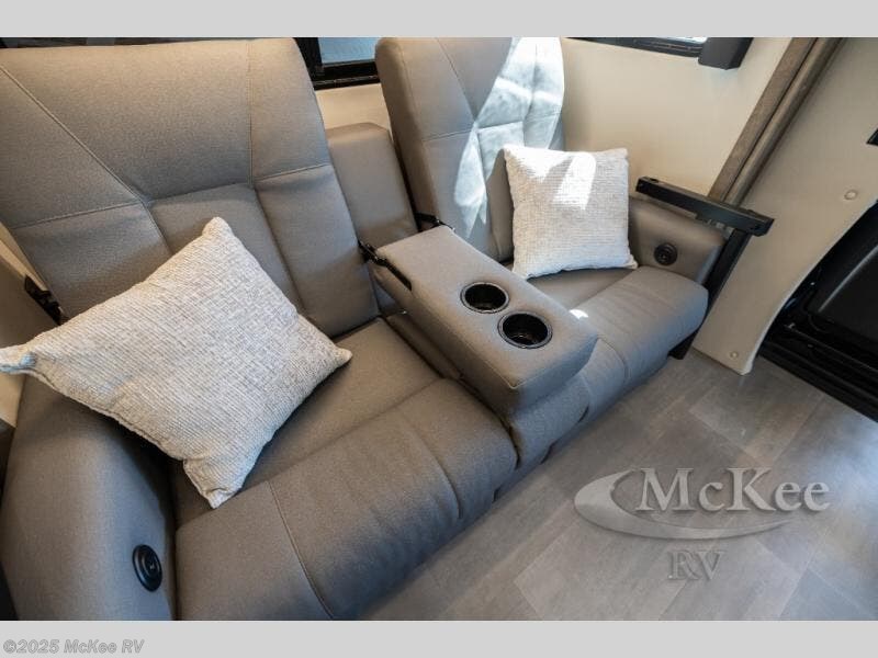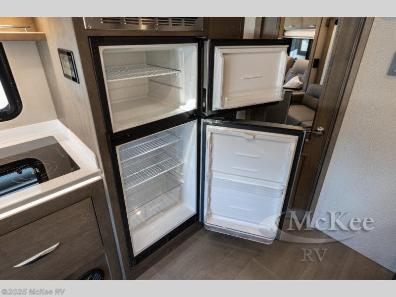 This is the perfect couples motorhome to explore the country! You will stay squeaky clean in the full rear bathroom with shower, and a large closet to store your clothes, towels, and other toiletries. Depending on what time you enter this coach will determine whether you see the sofa or the 65" x 72" Murphy bed. The kitchen has a two burner cooktop, a convection microwave, and an 8 cu. ft. refrigerator to prepare home cooked meals, and a booth dinette to enjoy them at. The 46" x 80" bunk mattress over the cab lets another member join in on the adventure and the booth dinette offers sleeping space as well.