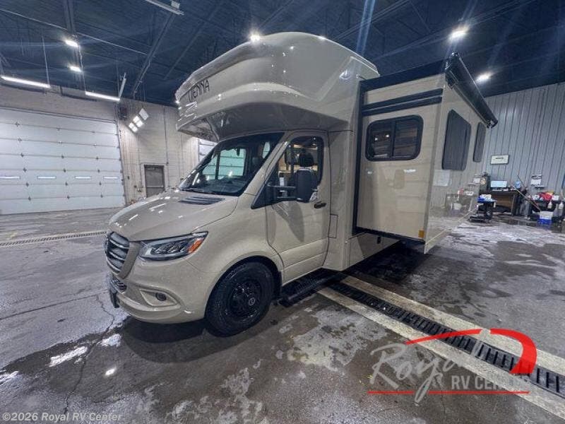 Luxury is in the details of each one of these Renegade Vienna Class C diesel motorhomes! They are built on a Mercedes-Benz Sprinter chassis, and include a four point hydraulic leveling system with app control, a 2000w true sine wave hybrid inverter, a 3.6KW LP generator with auto gen start, and a Winegard Connect rooftop OTA antenna with Wi-Fi and 5G ready. You will appreciate the Truma™ Comfort Plus tankless water heater when showering, the accent lighting at the galley countertop for style, and the USB charging in the living area, bedroom and kitchen to keep your electronics ready. The Maple hardwood cabinetry completes the luxurious décor throughout the inside. Make your selection today!