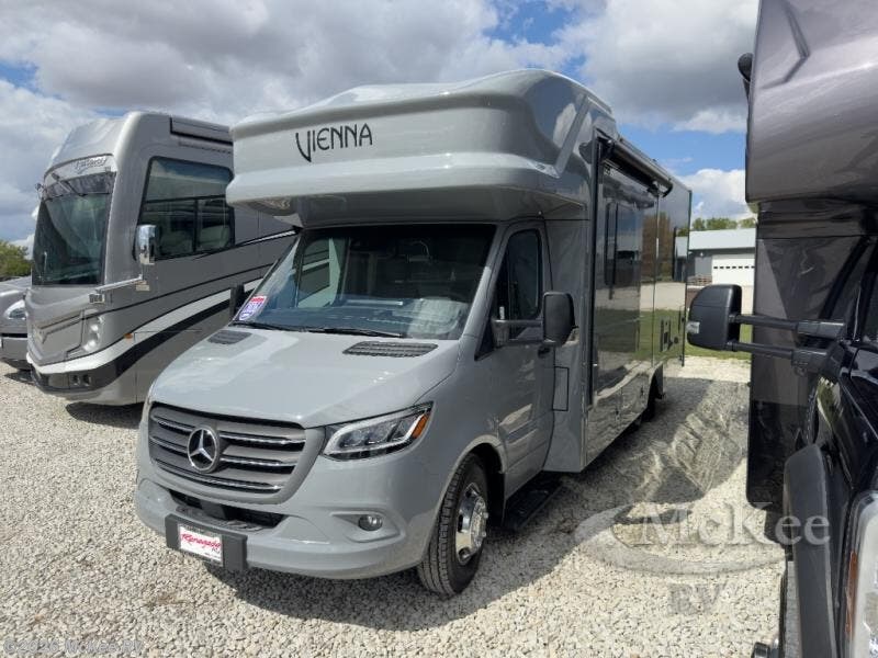 Luxury is in the details of each one of these Renegade Vienna Class C diesel motorhomes! They are built on a Mercedes-Benz Sprinter chassis, and include a four point hydraulic leveling system with app control, a 2000w true sine wave hybrid inverter, a 3.6KW LP generator with auto gen start, and a Winegard Connect rooftop OTA antenna with Wi-Fi and 5G ready. You will appreciate the Truma™ Comfort Plus tankless water heater when showering, the accent lighting at the galley countertop for style, and the USB charging in the living area, bedroom and kitchen to keep your electronics ready. The Maple hardwood cabinetry completes the luxurious décor throughout the inside. Make your selection today!