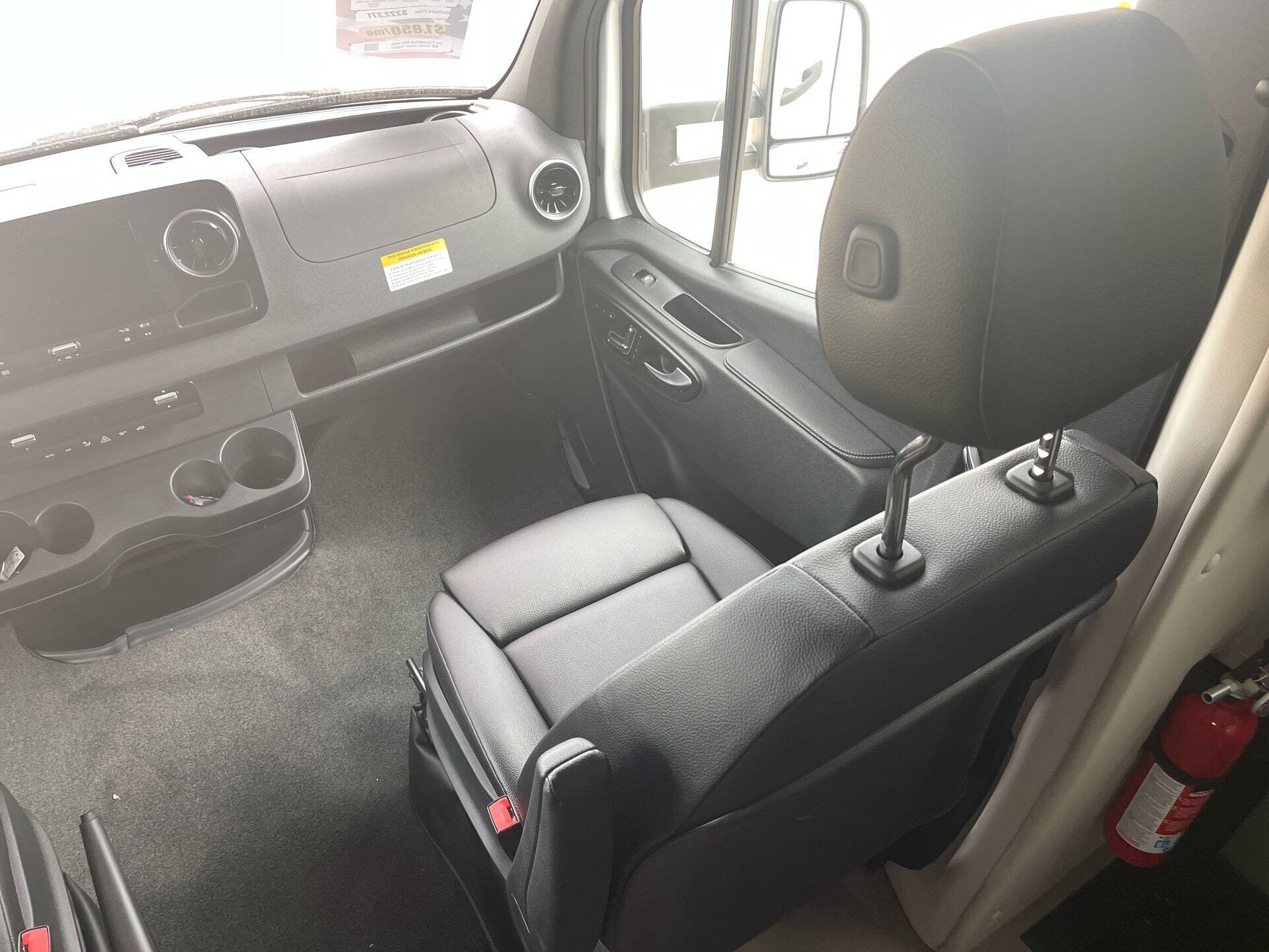 Comfort features include 18,000?BTU furnace, 13,500?BTU roof A/C, heated tanks, insulated tanks, and a lateral-arm awning with LED lighting and wind sensor. Safety and convenience extend with MBUX infotainment, adaptive cruise, lane-keep assist, and app-controlled leveling and lighting.