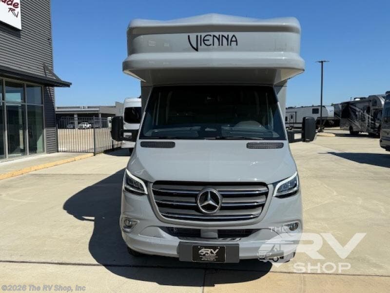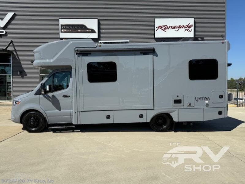 Luxury is in the details of each one of these Renegade Vienna Class C diesel motorhomes! They are built on a Mercedes-Benz Sprinter chassis, and include a four point hydraulic leveling system with app control, a 2000w true sine wave hybrid inverter, a 3.6KW LP generator with auto gen start, and a Winegard Connect rooftop OTA antenna with Wi-Fi and 5G ready. You will appreciate the Truma™ Comfort Plus tankless water heater when showering, the accent lighting at the galley countertop for style, and the USB charging in the living area, bedroom and kitchen to keep your electronics ready. The Maple hardwood cabinetry completes the luxurious décor throughout the inside. Make your selection today!