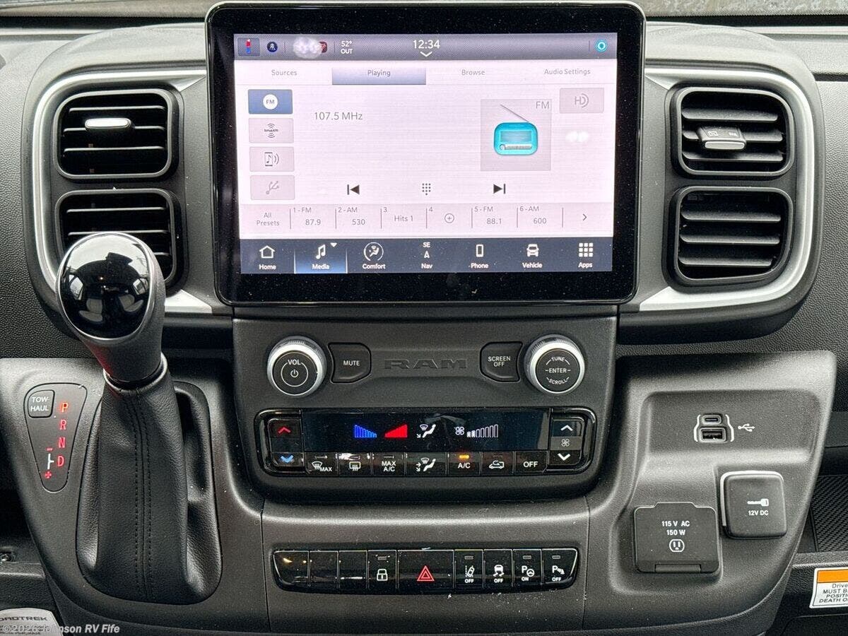 Introducing the 2026 Roadtrek Tuff PLAY, a versatile and well-equipped Class B RV designed to offer luxury and convenience on the road. This brand-new vehicle is crafted on a Ram ProMaster 3500 Extended Van chassis, ensuring both reliability and comfort for your travels. Under the hood, you'll find: - A 3.6L V6 24-Valve Gas Engine - 280 horsepower and 260 lb-ft of torque - 6-Speed 62TE Automatic Transmission - 220-Amp Alternator and Dual Battery System (95A and 400 AGM) - Rear Sumo Springs for a smoother ride - Four Wheel Anti-Lock Disc Brakes - Polished 16-inch Aluminum Wheels with LT225/75R16E Tires Safety is a priority in the Roadtrek Tuff, equipped with advanced features such as: - 360 Surround View Camera for comprehensive visibility - Adaptive Cruise Control with Stop/Go functionality - Blind Spot Monitoring and Collision Warning systems - Lane Departure Warning and Driving Assist features - Park Assist, Cross Path Detection, and Rearview Backup Camera The cab is designed for driver and passenger comfort, including: - Power Entry Steps and Power Side Windows - Climate Control system for optimal comfort - Uconnect 5 with a 10-inch Touchscreen for media and navigation - Voice Command, AM/FM/Sirius XM, USB, Aux, and Bluetooth connectivity - 4G LTE WiFi Hotspot and GPS Navigation with Connected Travel The living space is optimized for both relaxation and functionality: - A 13-foot Power Roll-Up Awning and Side Entry Step Bar - 6'2" Standing Height and Open Isle Floorplan - Dark Automotive Glass Windows with Privacy Night Shades - Side and Rear Bug Screens for ventilation without pests - A side-facing, power-operated leatherette sofa Dining facilities ensure a delightful food preparation experience: - Front and Rear Dining areas with an adjustable pedestal table - Thermal Form Countertop Surface with a foldable extension - Stainless Steel Sink with Flush Cover - 12v 5.3cf Compressor Refrigerator, 2-Burner Cooktop, and 110v 700w Microwave Oven For restful nights, the RV provides versatile sleeping arrangements: - Power Leatherette Sofa that converts into Twin or King beds - Optional Front Bed available for additional sleeping space The bathroom facilities include: - Fiberglass Enclosed Wet Bath with Sink and Shower - Secure Storage Space and Toilet - Outdoor Hot and Cold Shower for convenience Mechanically, the Roadtrek Tuff is robustly equipped with: - Solar Pre-Wire and a 5.9-Gal LP Tank - 30-Amp Detachable Service Cord and 3000w Inverter - Tankless On-Demand Hot Water and 12v Macerator Pump - 110v 11k Roof-Mount AC and 16k LP Auto Ignition Furnace The 2026 Roadtrek Tuff PLAY is an excellent choice for those seeking a compact, yet fully-featured RV for both short getaways and long adventures. Its thoughtful design and high-end amenities ensure that every journey is experienced in style and comfort. ???