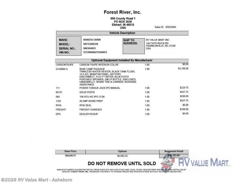 Request More Info on this 2026 Shasta I-5 Edition 532BEDS Offered for sale by RV Value Mart - Asheboro