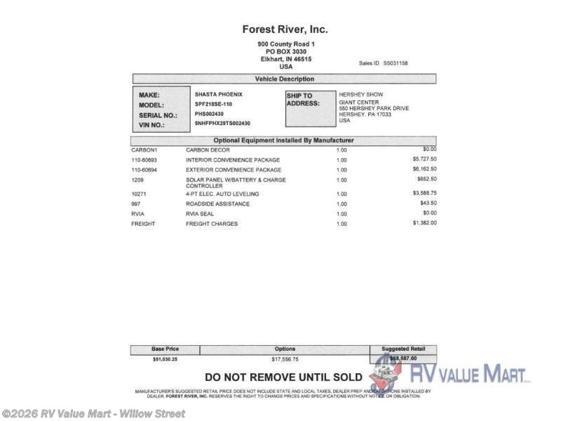Request More Info on this 2026 Shasta Phoenix Lite 218SE Offered for sale by RV Value Mart - Willow Street