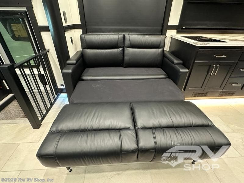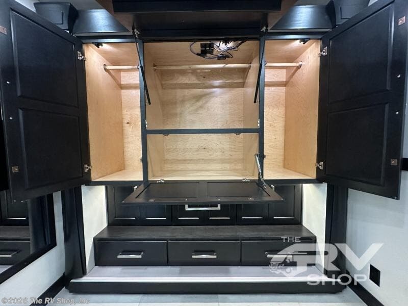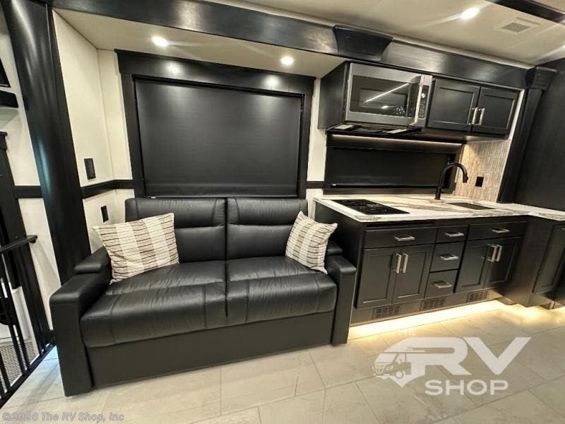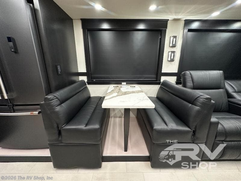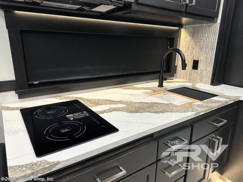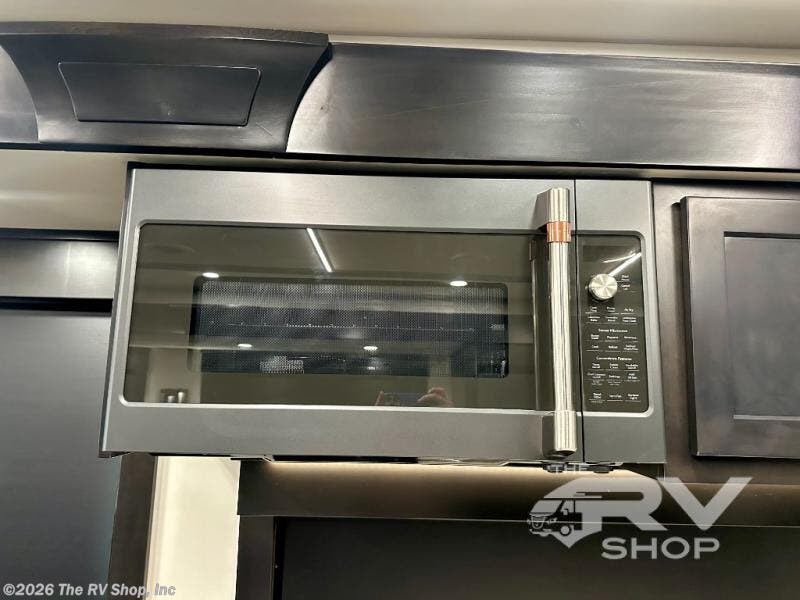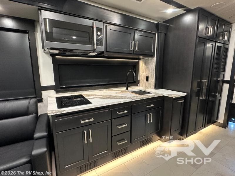Expect to find comfort and space at every turn in this coach with four slides, a bath a half, plus a flip-up bed or storage in the cab! Once you park for the day, you can make lunch for everyone on the two-burner induction cooktop or in the over-the-range convection microwave, and there is a GE Cafe refrigerator to keep your food fresh. Your crew can dine at the booth dinette, then relax on the Villa theater seating and Villa hide-a-bed sofa once you've cleaned up. A half bath is right off of the kitchen for quick and easy access, and you'll find the full bath in the back, creating a master bedroom you are sure to love. Here, a mini king bed slide provides a great night's rest, and there is a large closet slide to keep your things organized. This coach also features washer and dryer prep if you plan to add these appliances!