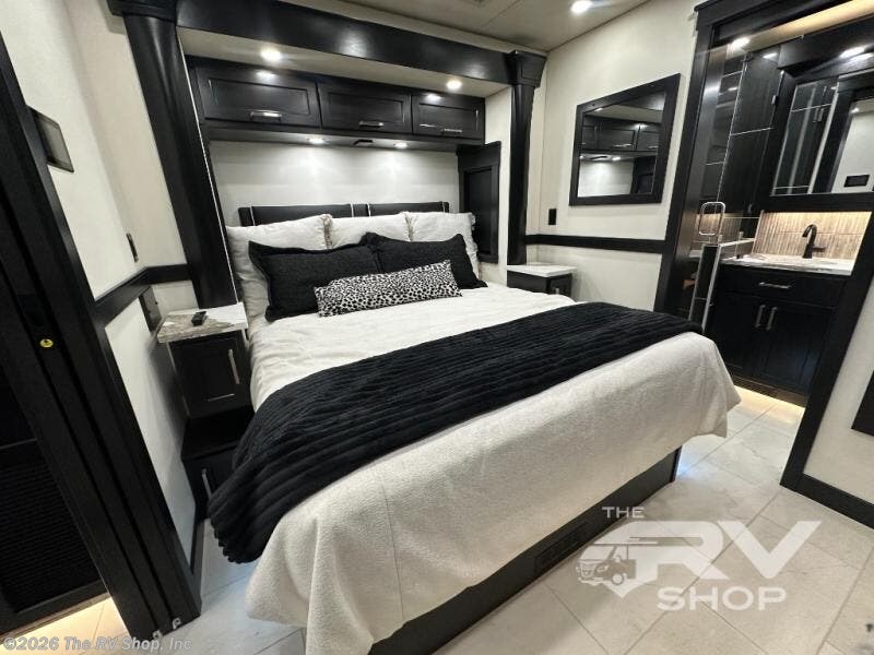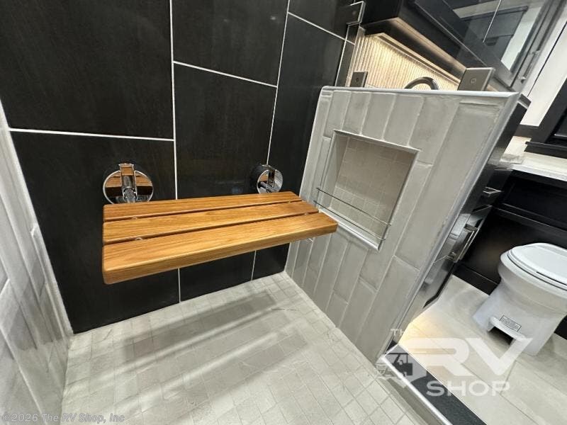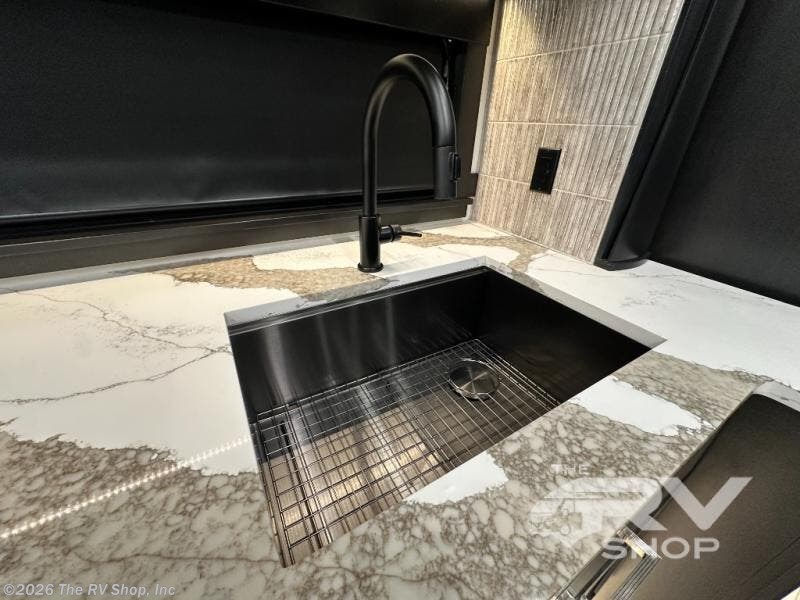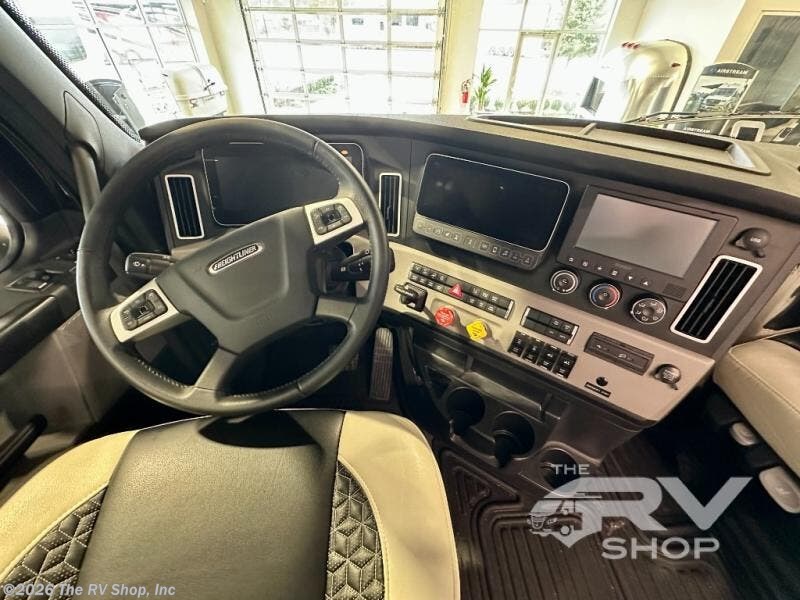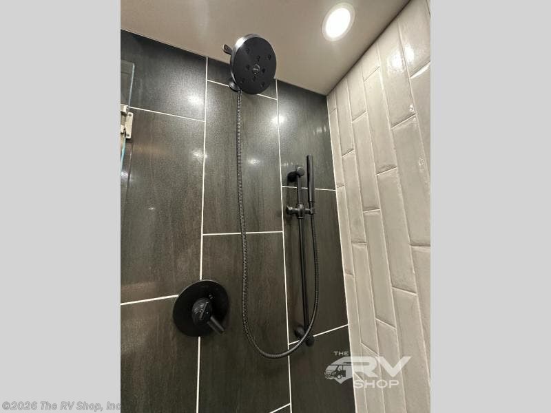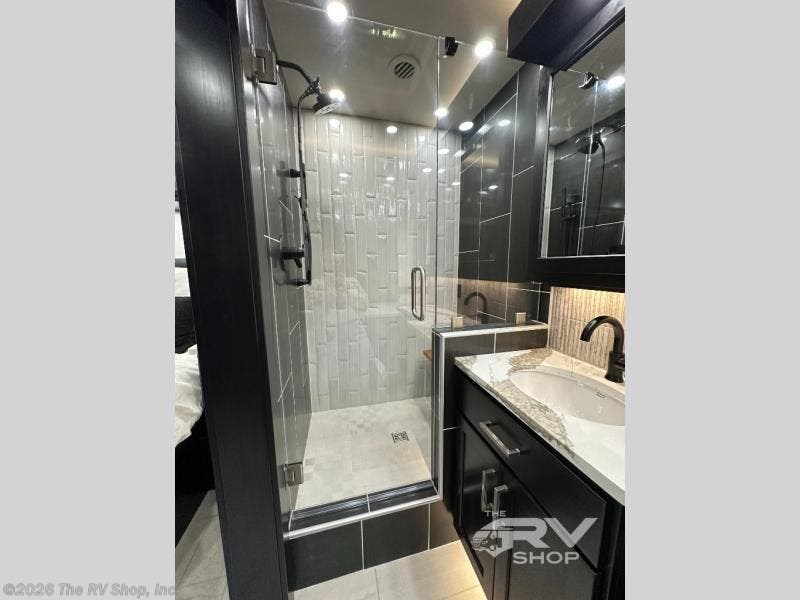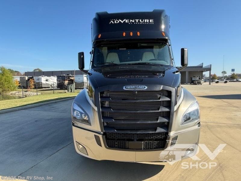 With any Adventure Super C diesel motorhome by ShowHauler, you will find a durable coach made to last thanks to the all-steel cage construction, insulated walls, floors, and ceilings, plus the one-piece 100% walk-on roof! There are lighted storage compartments outside to keep your gear secure, along with a lighted grab handle, and exterior hot/cold shower in the wet bay. You can keep your excursions powered up with the 12.5W Onan diesel generator, 1200W solar package, and Battleborn lithium battery pack. There is also a 360-degree camera/monitor for easy maneuvering and a Firefly Multi-Plex lighting control system for added convenience. You will fall in love with the interior of the Adventure with hardwood cabinets and drawers, porcelain heated tile throughout, Quartz countertops with backsplash in the kitchen, and a tiled shower with a glass door in the bath!