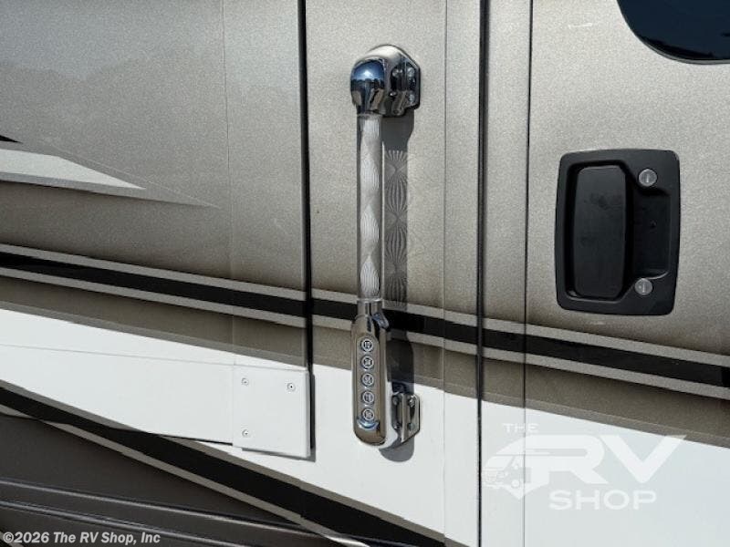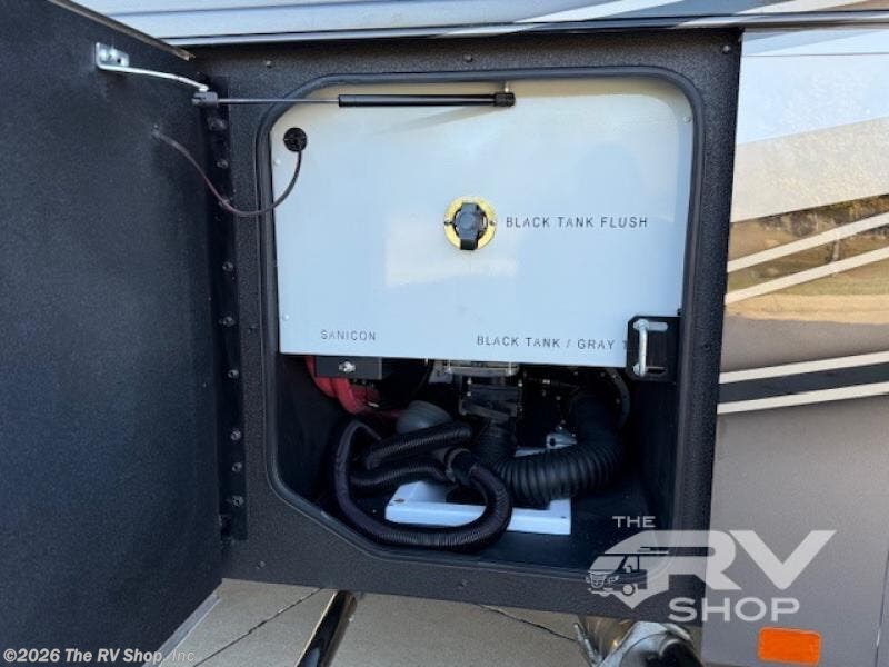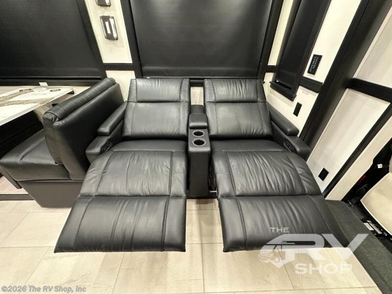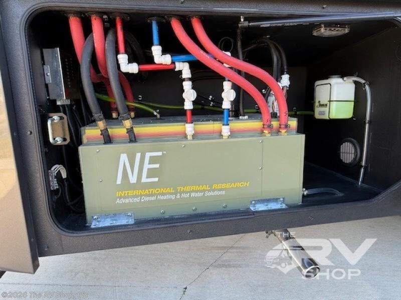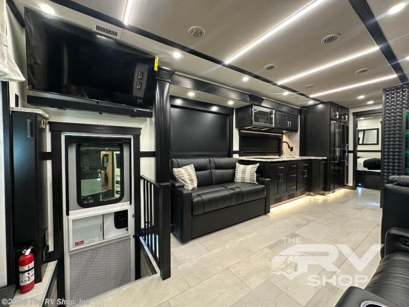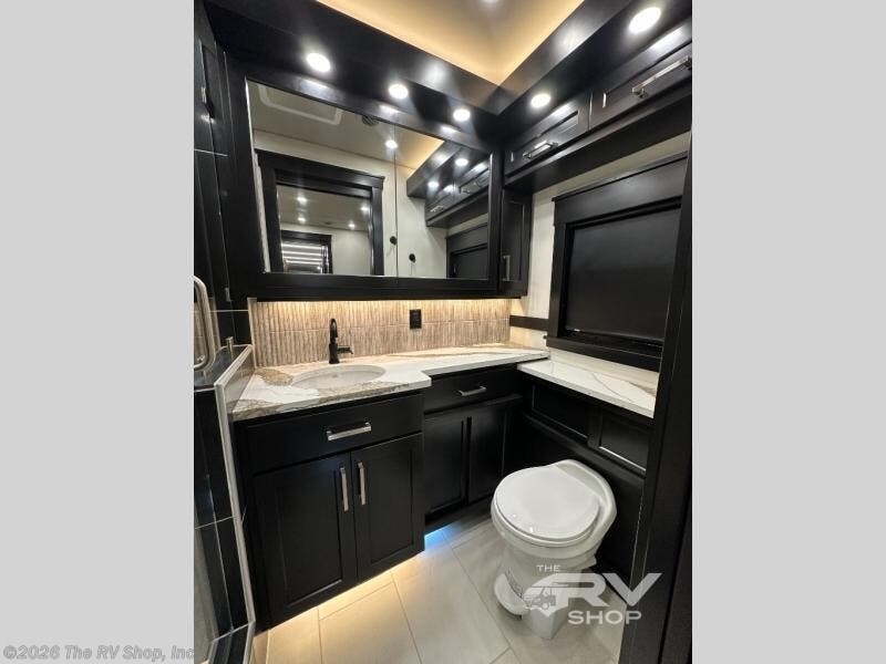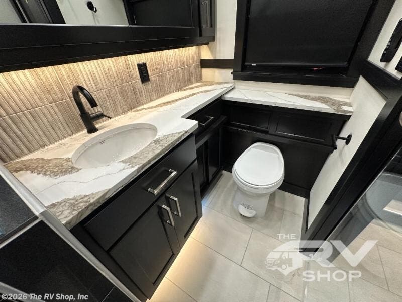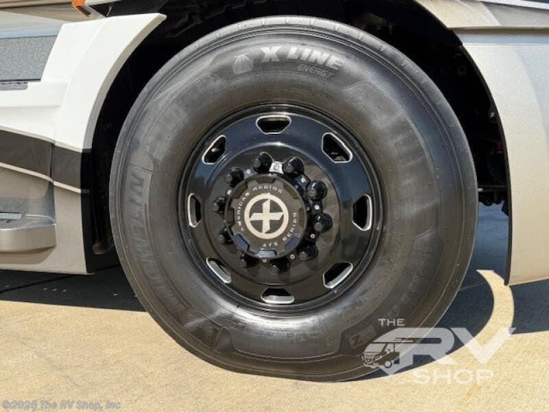 With any Adventure Super C diesel motorhome by ShowHauler, you will find a durable coach made to last thanks to the all-steel cage construction, insulated walls, floors, and ceilings, plus the one-piece 100% walk-on roof! There are lighted storage compartments outside to keep your gear secure, along with a lighted grab handle, and exterior hot/cold shower in the wet bay. You can keep your excursions powered up with the 12.5W Onan diesel generator, 1200W solar package, and Battleborn lithium battery pack. There is also a 360-degree camera/monitor for easy maneuvering and a Firefly Multi-Plex lighting control system for added convenience. You will fall in love with the interior of the Adventure with hardwood cabinets and drawers, porcelain heated tile throughout, Quartz countertops with backsplash in the kitchen, and a tiled shower with a glass door in the bath!