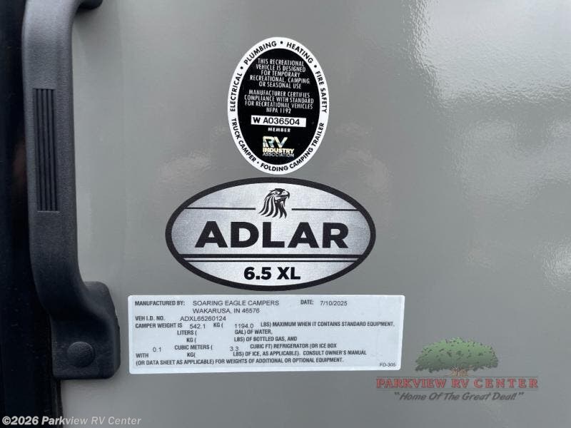 Request More Info on this 2026 Soaring Eagle Adlar 6.5XL Offered for sale by Parkview RV Center