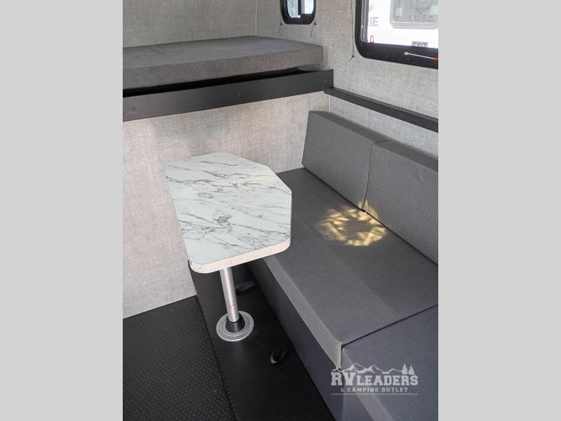 Experience the ultimate in adventure and flexibility with our truck camper. The kitchen area features a refrigerator that offers great storage for your favorite fruits and vegetables, keeping them fresh and ready to eat. There is also a sink and portable cooktop, making meal prep easy on the go. Also, the ample storage keeps your gear organized. The two-person dinette bench seat and removable table provide a cozy spot for meals and relaxation. The 45” x 80” bunk offers a comfortable sleeping area at night, with the 80” x 81” pull-out North/South bed providing additional sleeping space.
