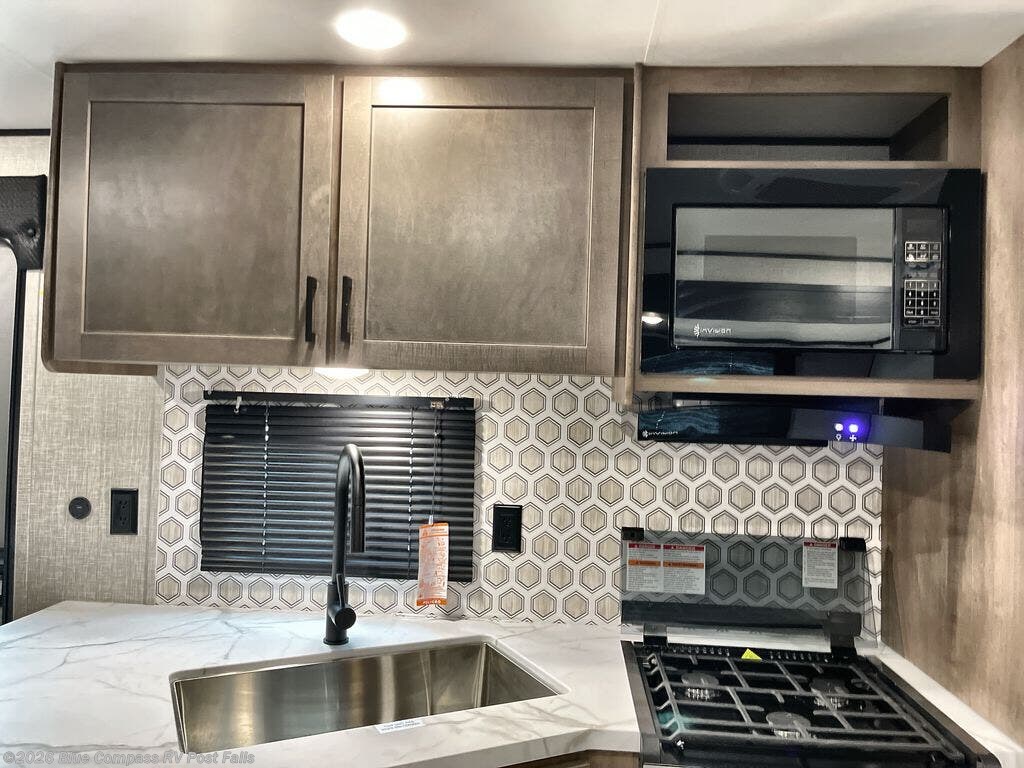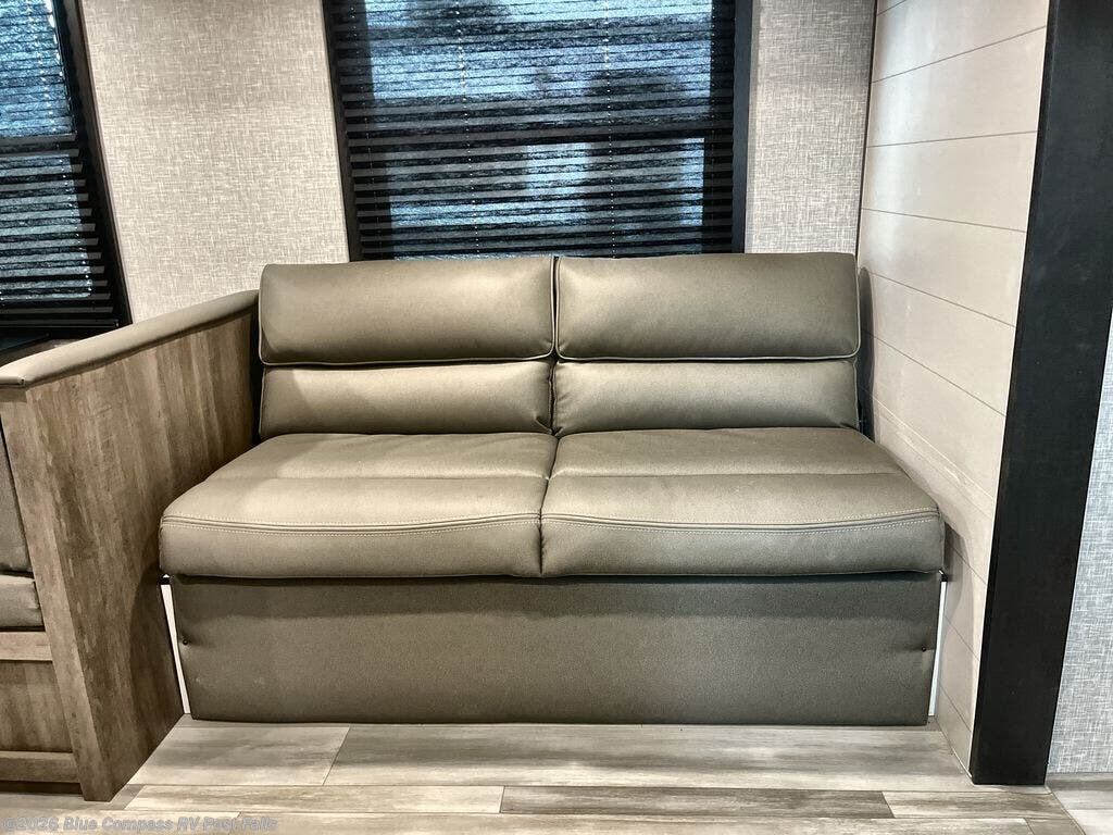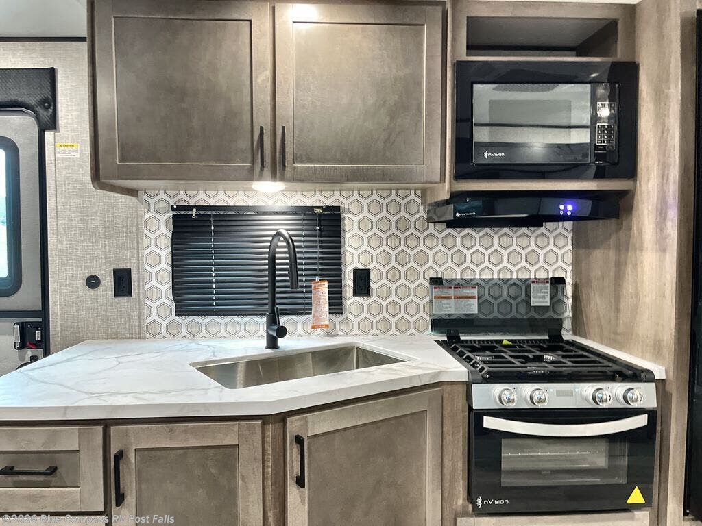 Enjoy camping at local RV spots or even national parks in this dual axle trailer that offers a large slide with a jackknife sofa and booth dinette for more sleeping space and interior room to relax. There is a full bathroom to get cleaned up in with extra counter space for toiletries, and the kitchen provides a three burner range with glass cover, a 17" oven and a pantry to hold all the goodies. You can enter the front bedroom from each side of the entertainment center giving you your own side, and there are dual wardrobes plus a shelf overhead. And don't forget about the 16' power awning with LED lighting, the exterior storage for your outdoor gear and the outside kitchen. You might even like to add a few options, take a look at the list!
