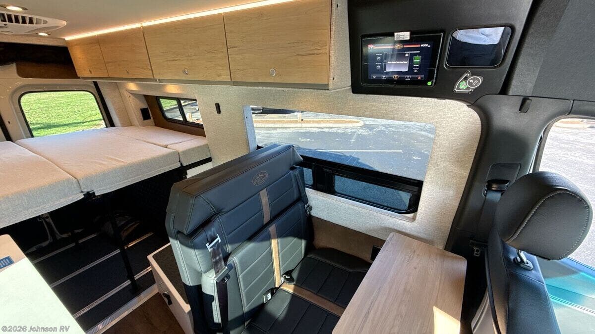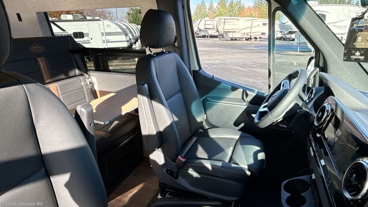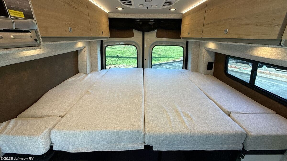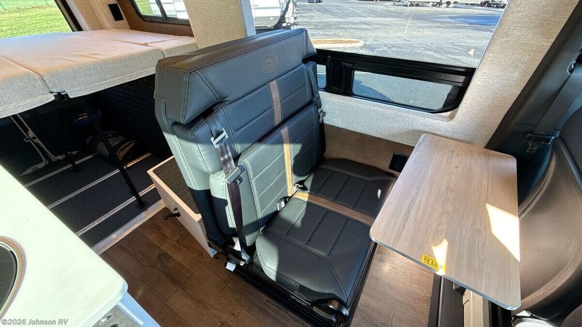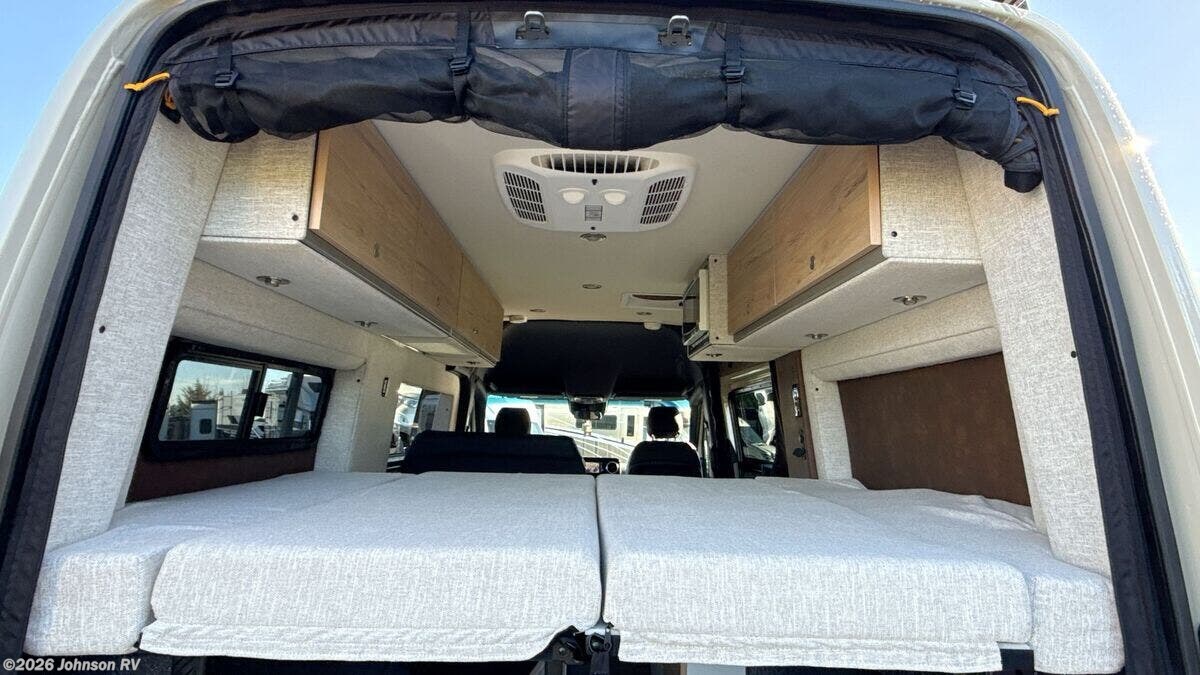 Features Include: 144-inch Wheelbase, Auxiliary Alternator, All-Terrain Tires, Active Brake Assist, Rain Sensor, Running Boards, Swivel Heated Seats, Satellite Radio, Entry Assist Handle, 4-Seatbelts, Privacy Shades, Stainless Steel Sink, Folding Faucet, Refrigerator Freezer, Six Indoor USB Ports, Two 12v Outlets, 2-Beds, Low-Mount Solar Port, Cabin AC System, Diesel-Fired Heating, Hood Spoiler, nVader Ladder