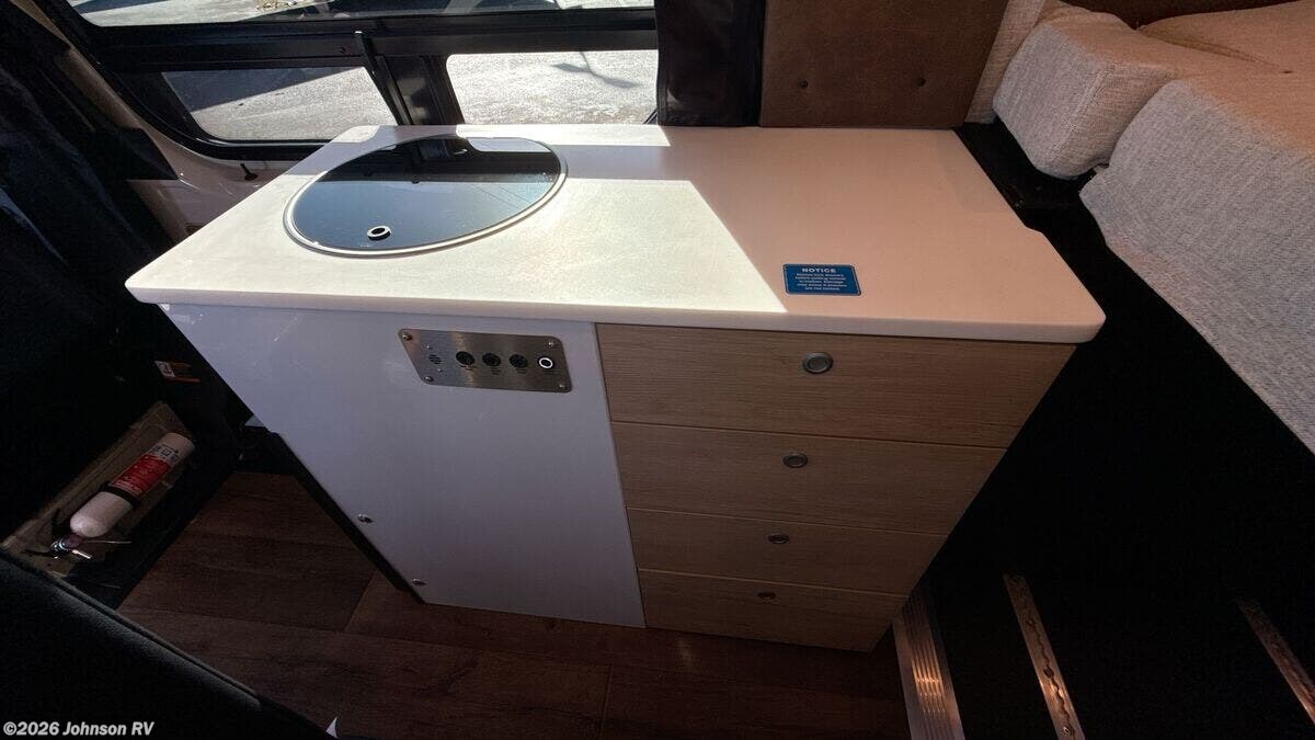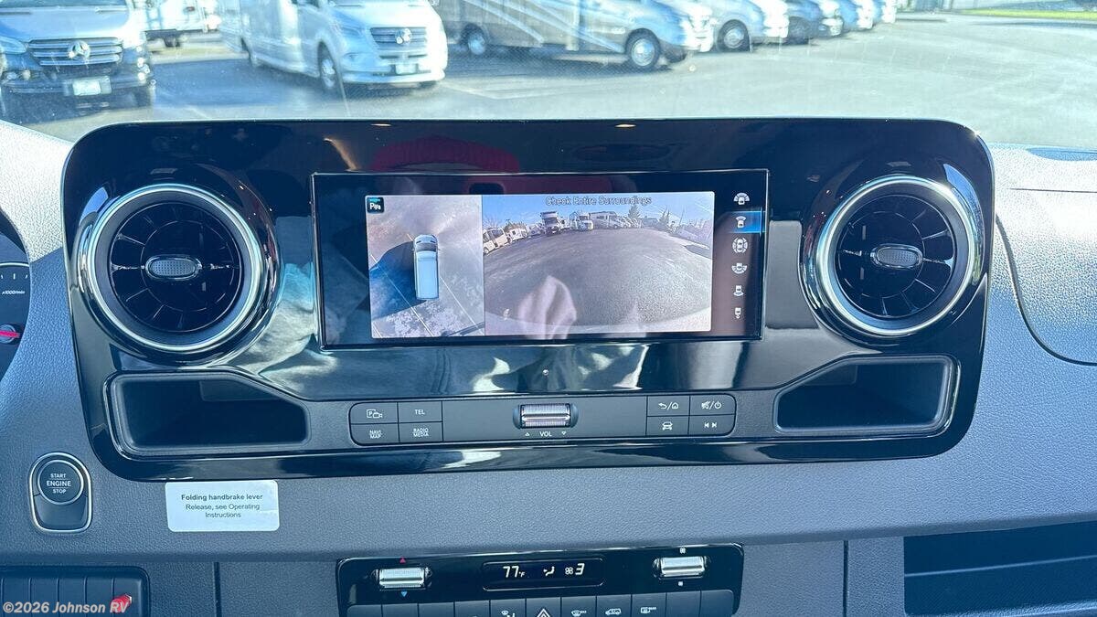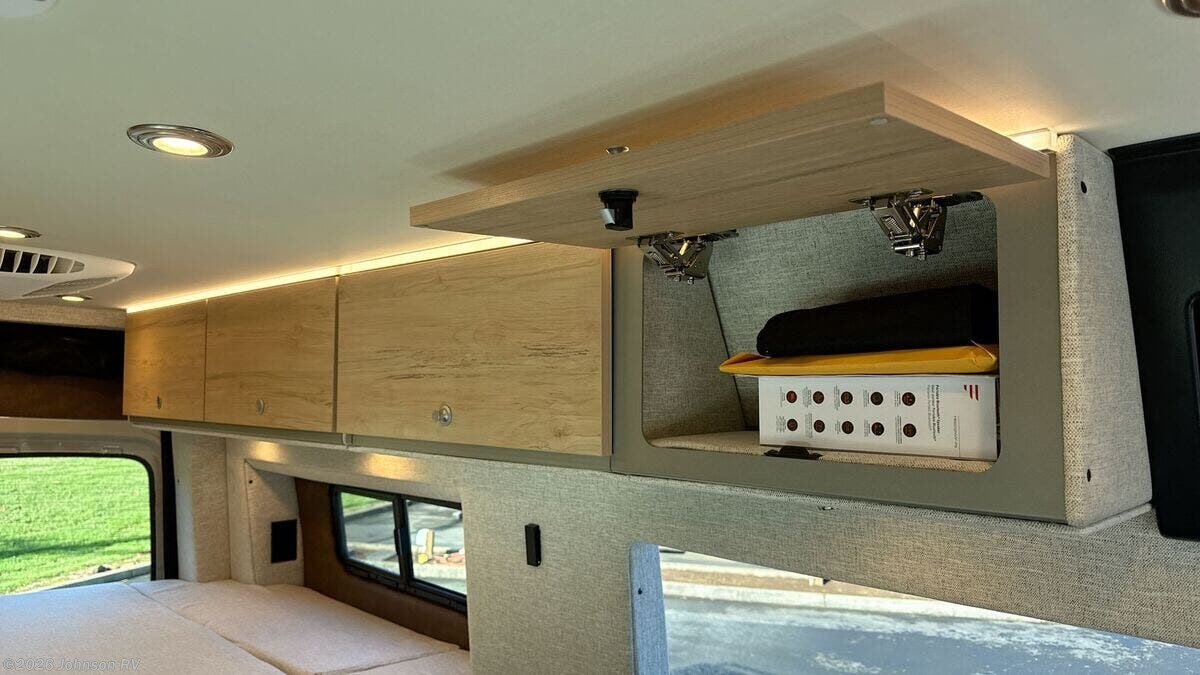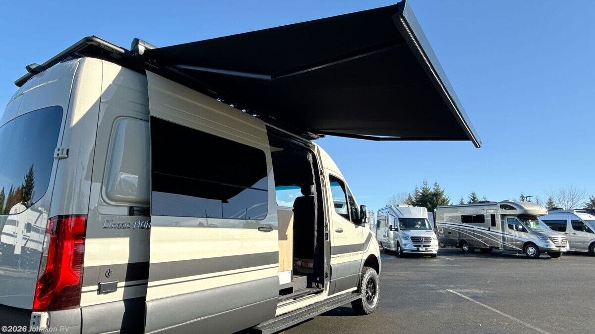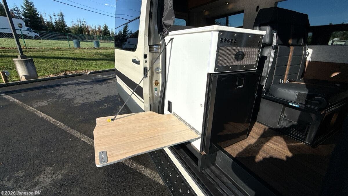 Features Include: 144-inch Wheelbase, Auxiliary Alternator, All-Terrain Tires, Active Brake Assist, Rain Sensor, Running Boards, Swivel Heated Seats, Satellite Radio, Entry Assist Handle, 4-Seatbelts, Privacy Shades, Stainless Steel Sink, Folding Faucet, Refrigerator Freezer, Six Indoor USB Ports, Two 12v Outlets, 2-Beds, Low-Mount Solar Port, Cabin AC System, Diesel-Fired Heating, Hood Spoiler, nVader Ladder
