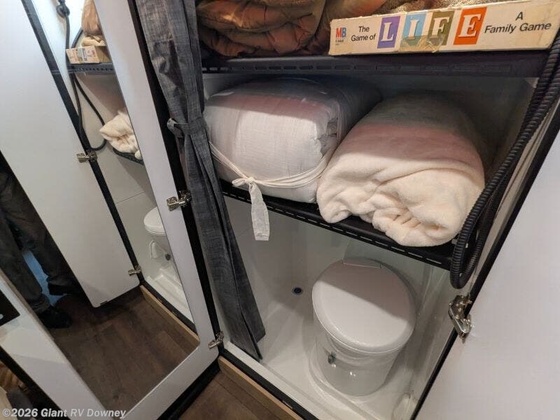 - BoomBox™ Bathroom: Fully enclosed wet bath with a cassette toilet, shower, and vented storage for gear drying.