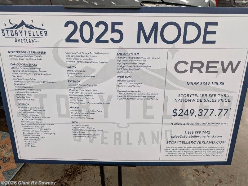 Request More Info on this 2026 Storyteller Overland Crew Mode XL Offered for sale by Giant RV
