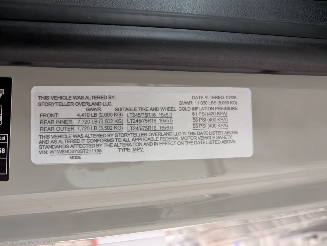 Request More Info on this 2026 Storyteller Overland Crew Mode XL Offered for sale by Giant RV