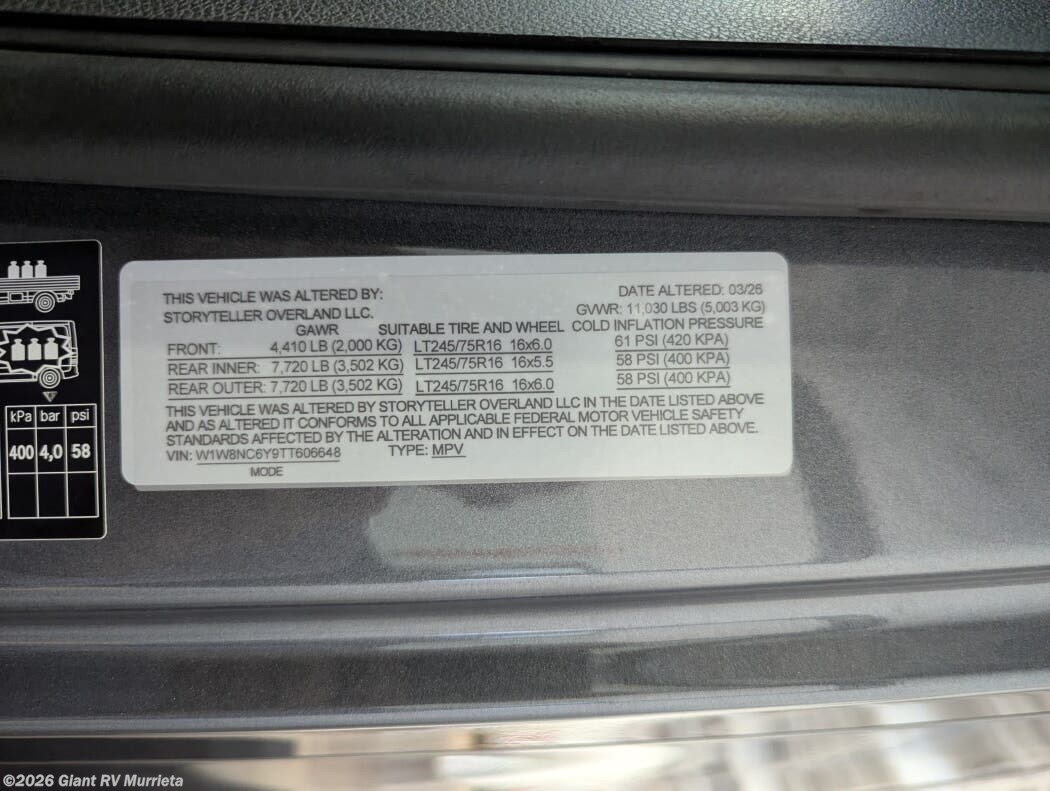 Request More Info on this 2026 Storyteller Overland Crew Mode XL Offered for sale by Giant RV