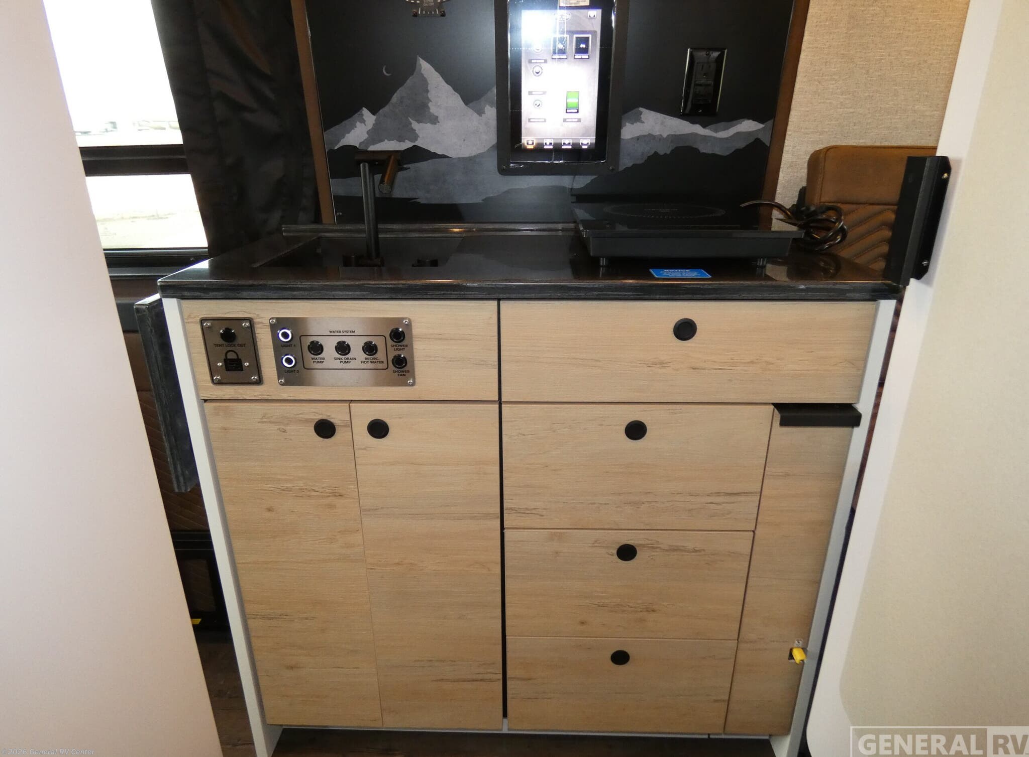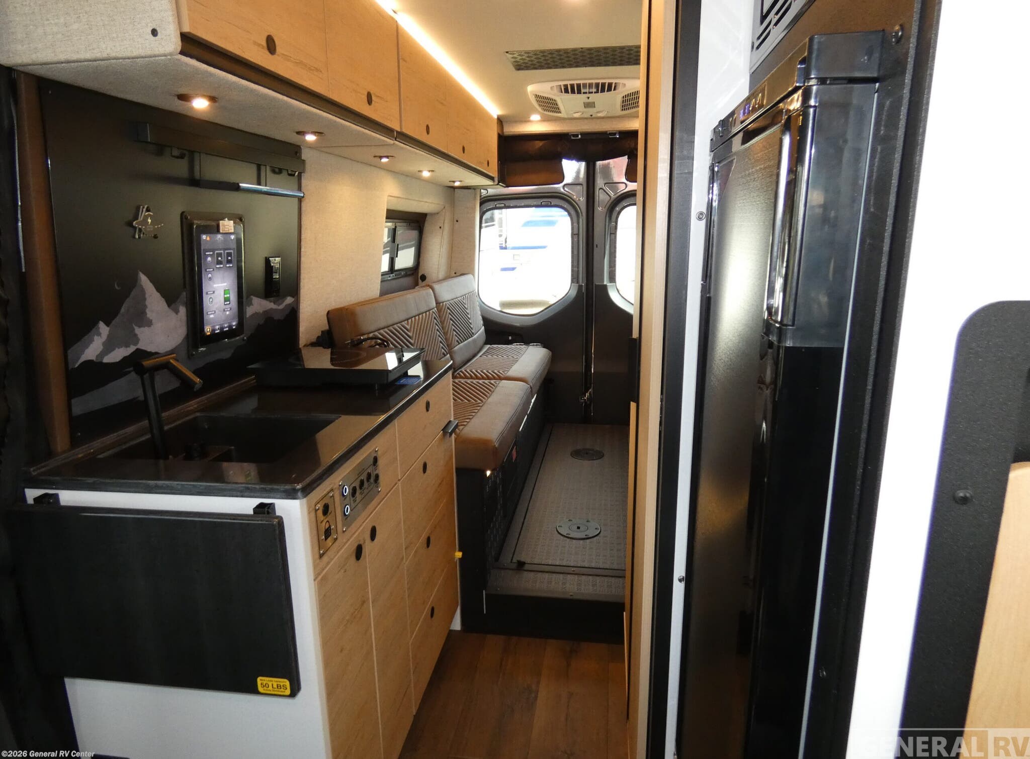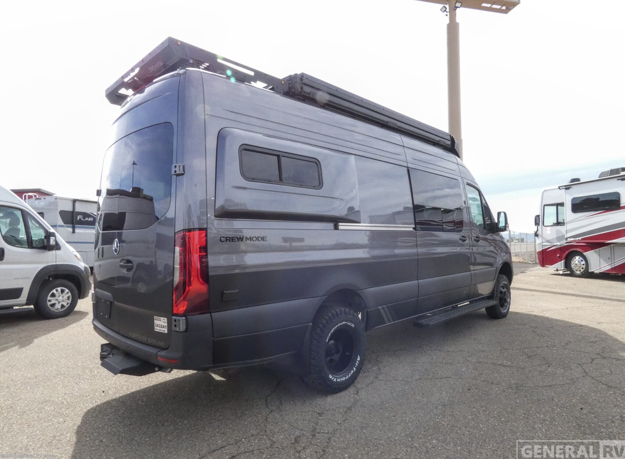 Storyteller Overland Class B diesel van Crew MODE XL highlights: Five Seatbelts BoomBox Full Bath Wet/Dry Closet LunarLoft Powered Pop-Up Tent Microwave/Air Fryer GalaxyGear Storage Tray The whole gang can tag along in this spacious van with five seatbelts! There is an RV queen-size Murphy-style bed with the TroupeLounge, plus a full-size bed in the LunarLoft, allowing you to sleep four! You can easily bring more gear along since there is more space, and you're sure to appreciate the BoomBox full wet bath onboard. There is also a cassette toilet with freshwater flushing, an exterior shower, and a hot water recirculating system for added convenience. You can create your best meals with the portable induction cooktop and microwave/air fryer, and there is a 3.3 cu. ft. refrigerator/freezer for some fresh items. Live free, explore endlessly, and tell better stories with the Storyteller Overland Class B diesel van! With an all-wheel drive, Mercedes-Benz sprinter chassis and diesel engine, the Storyteller Overland Crew MODE XL van is always ready to go whenever you are! You can travel with complete peace of mind knowing that each van meets all of the qualifications for the various and rigorous safety tests, so it is safe. There are sliding and rear door bug screens, heavy duty custom wheels with all-terrain tires, and four 110V exterior outlets. A diesel-fired heating system and cabin A/C with soft start will keep you comfortable, and there is a MODEcom controller panel to manage your van's functions with ease. The Crew MODE XL also includes removable upper cabinetry, dimmable LED lights, privacy shades for all windows, and advanced thermal-acoustic polymer insulation for added convenience!