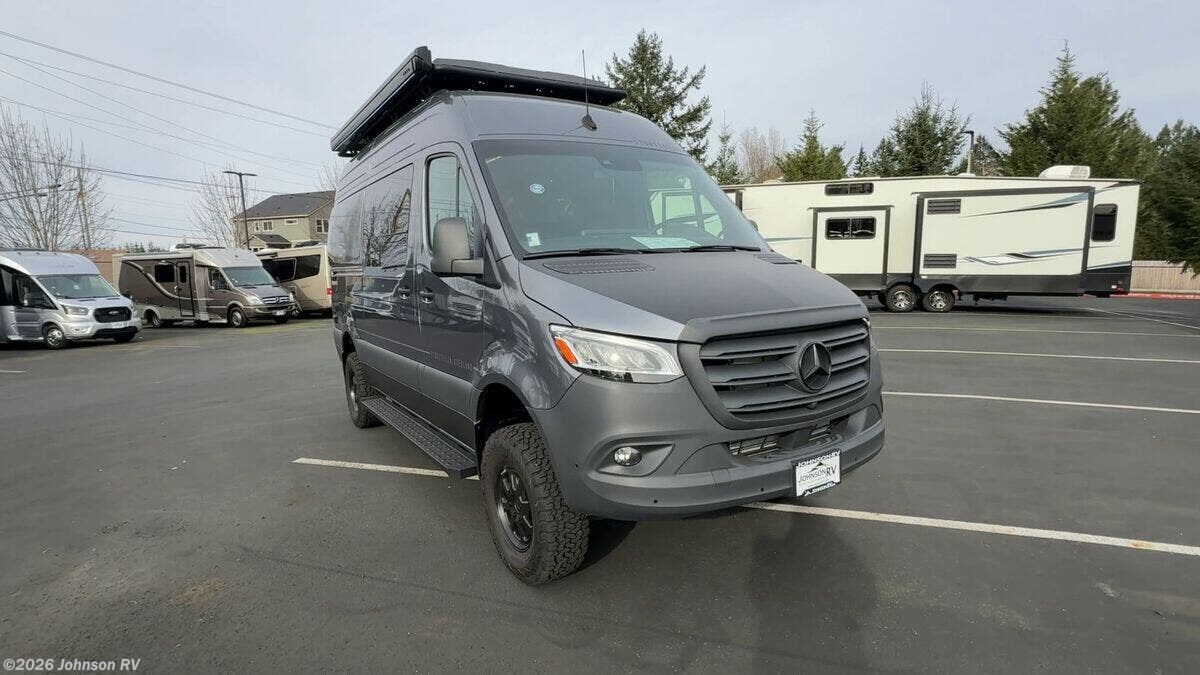 Features Include: 144-inch Wheelbase, Auxiliary Alternator, Active Brake Assist, Rain Sensor, Running Boards, Swivel Heated Seats, Satellite Radio, Entry Assist Handle, 4-Seatbelts, Privacy Shades, Stainless Steel Sink, Folding Faucet, Refrigerator Freezer, STOlink Power Plug, Six Indoor USB Ports, 2-Beds, RV Twin Bed, Low-Mount Solar Port, 100w Solar Panel, Roof AC System, Hood Spoiler, nVader Rear Rack, nVader Ladder
