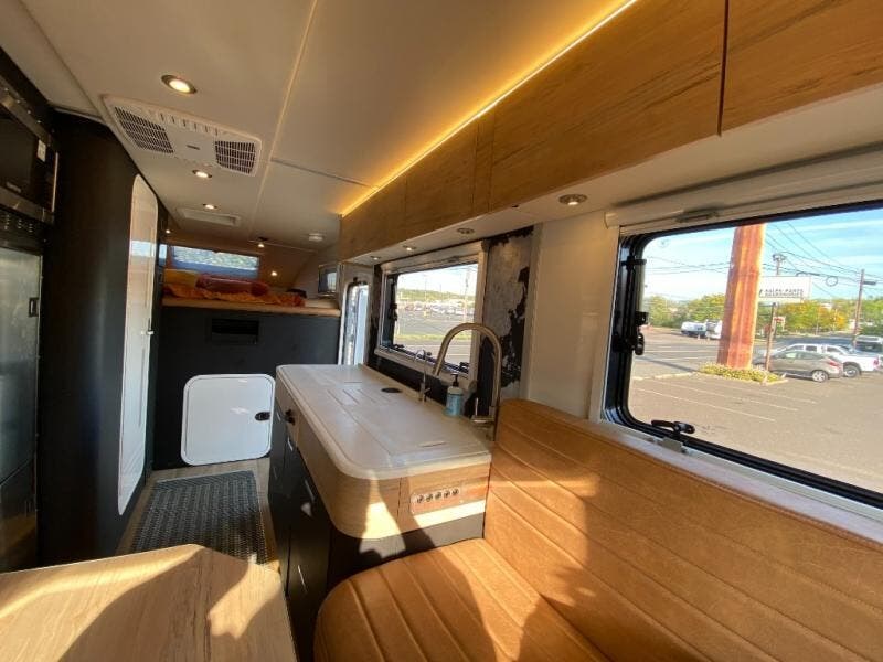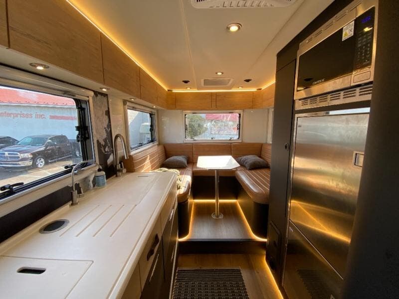 Rugged on the outside, refined on the inside is what you will find with this motorhome truck! Enjoy home cooked meals in the wilderness with the stainless steel convection oven, microwave, air fryer, and 1800 watt dual burner induction cooktop, plus a stainless steel 6.9 cu. ft. fridge/freezer. The U-shaped dinette is great for gathering around together during the day and at night it can transform into an extra sleeping space. Fall asleep under the stars with the loft queen bed which has a window right above it for your viewing pleasure and 3.7 cu. ft. of total bin storage below it. It also has 12V USBs, 110V outlets, and wireless charging stations next to the bed. Freshen up each morning in the spacious wet bathroom with 6' 5" of standing room and120 gallons of fresh water on board!