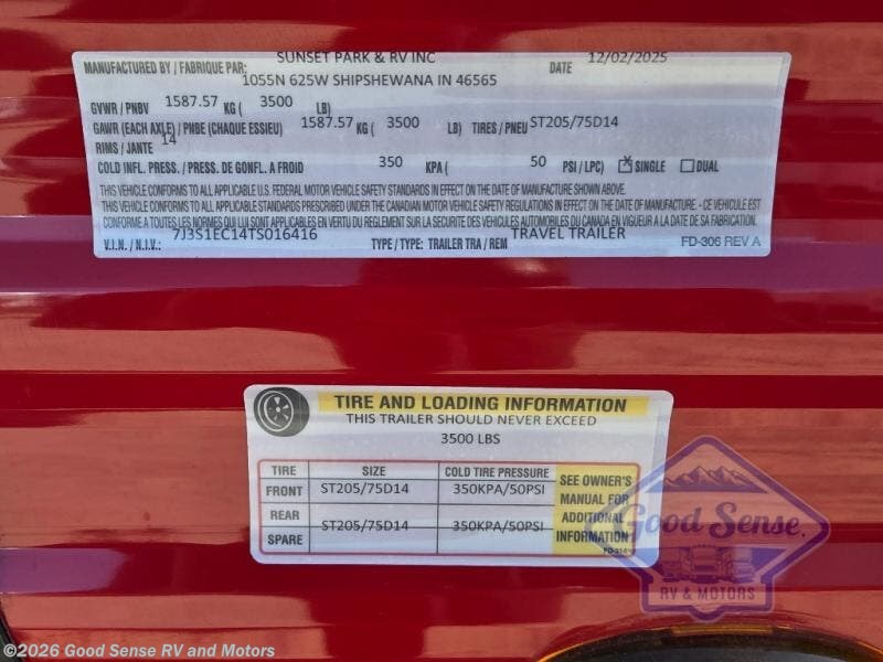 Request More Info on this 2026 Sunset Park RV Sun Lite 14FD Offered for sale by Good Sense RV and Motors