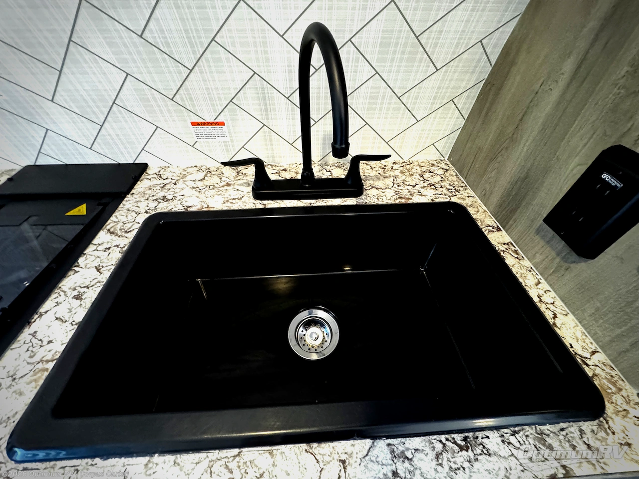You can trust the build and enjoy your experience with any one of these Sunset Park RV Sun Lite travel trailers or toy haulers! Their aerodynamic profile is not only easy to haul, but also saves on fuel. They are built to withstand years of traveling even though they are lightweight with a diamond plate rock guard, a one piece PVC roof membrane, Dexter Spring-Leaf axles, and tinted safety glass windows. Some comfort standards you are sure to enjoy are the two-burner stove top range with hood, light and fan, plus the refrigerator and microwave, and an outside shower to help keep the dirt outdoors where it belongs.