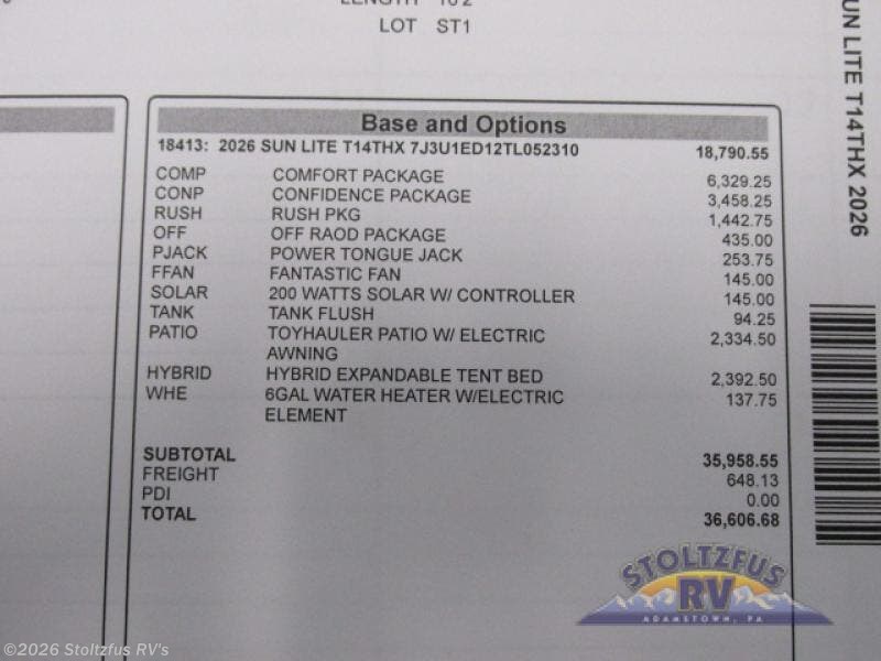 Request More Info on this 2026 Sunset Park RV Sun Lite 14THX Offered for sale by Stoltzfus RV's