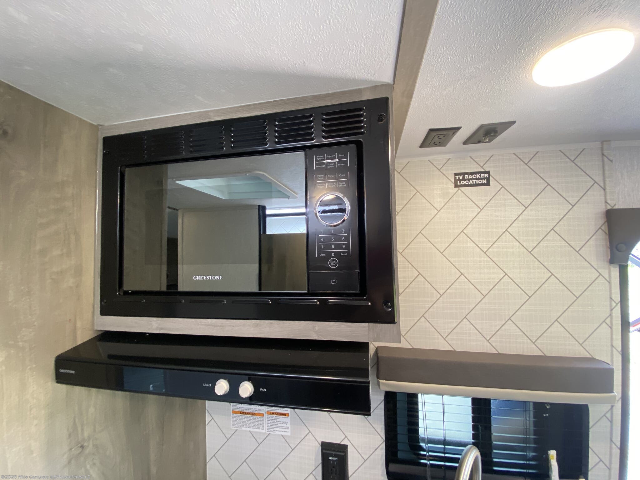 Backup Camera, Fire Extinguisher, LED Lights, Smoke Detector, TV, TV Antenna -