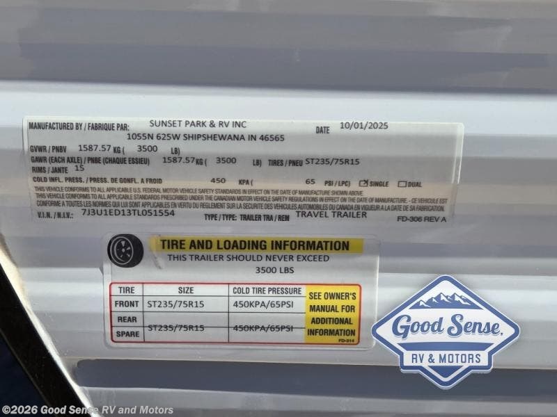 Request More Info on this 2026 Sunset Park RV Sun Lite 16BH Offered for sale by Good Sense RV and Motors