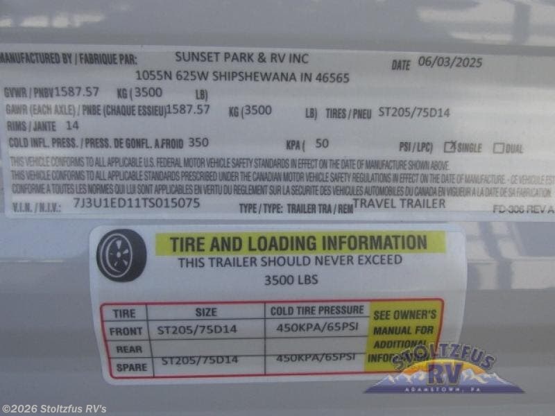 Request More Info on this 2026 Sunset Park RV Sun Lite LTD 13BD Offered for sale by Stoltzfus RV's