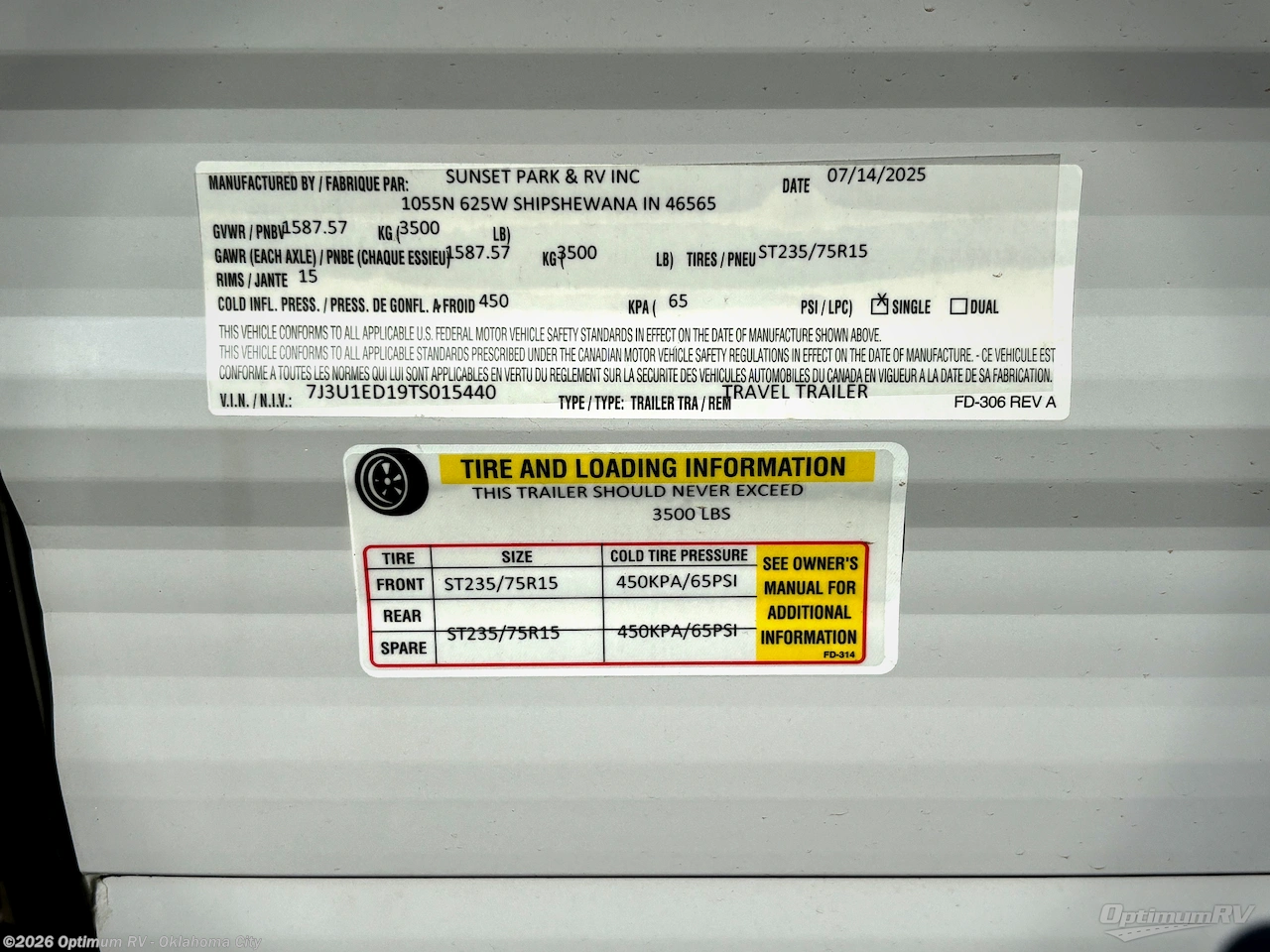 Request More Info on this 2026 Sunset Park RV Sun Lite LTD 13BD Offered for sale by Optimum RV - Oklahoma City