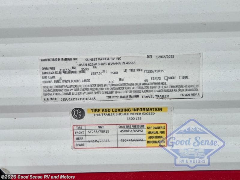 Request More Info on this 2026 Sunset Park RV Sun Lite LTD 13MJ Offered for sale by Good Sense RV and Motors