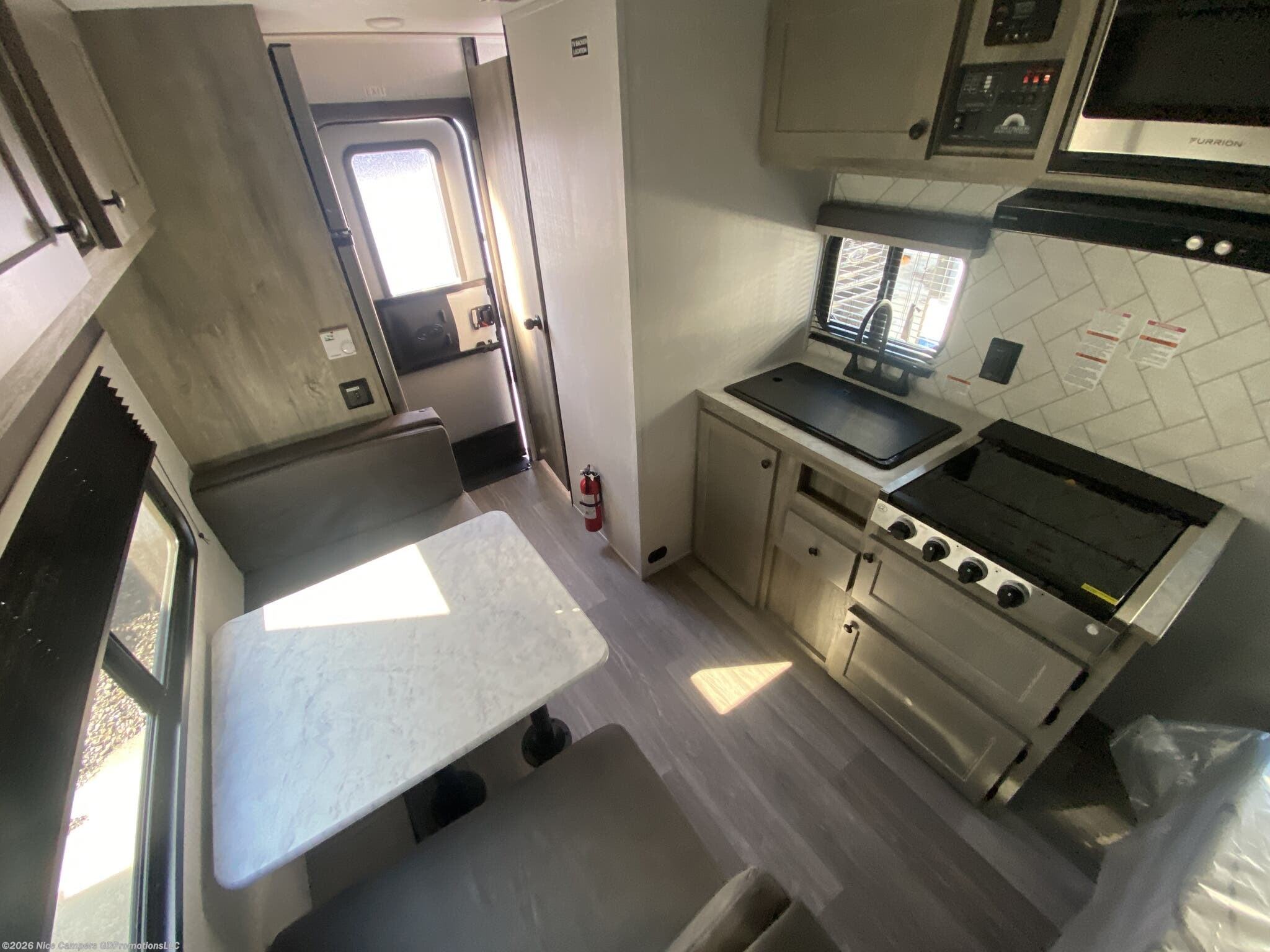 Booth dinette: This area can be used for dining or quickly converted into an additional bed, accommodating up to three people in total.