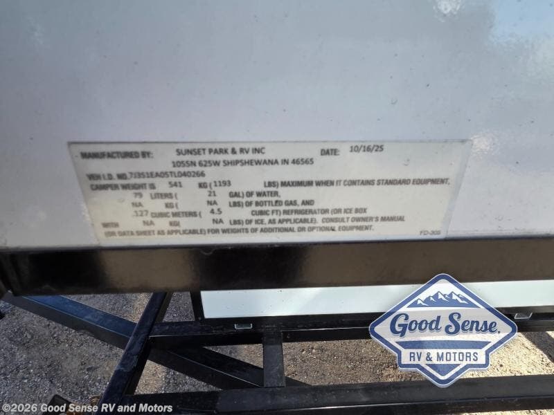 New 2026 Sunset Park RV Sun Lite 14FD