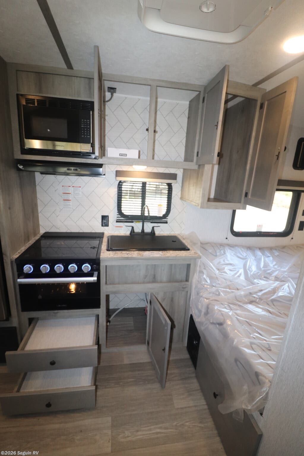 Inside, the Sunlite 25th emphasizes smart design and durable materials. Even in a compact footprint, you’ll find a welcoming atmosphere with practical storage solutions, easy-to-clean surfaces, and thoughtful lighting. This combination makes it an approachable option for first-time RV owners and seasoned travelers alike, offering a comfortable basecamp for all your itineraries.