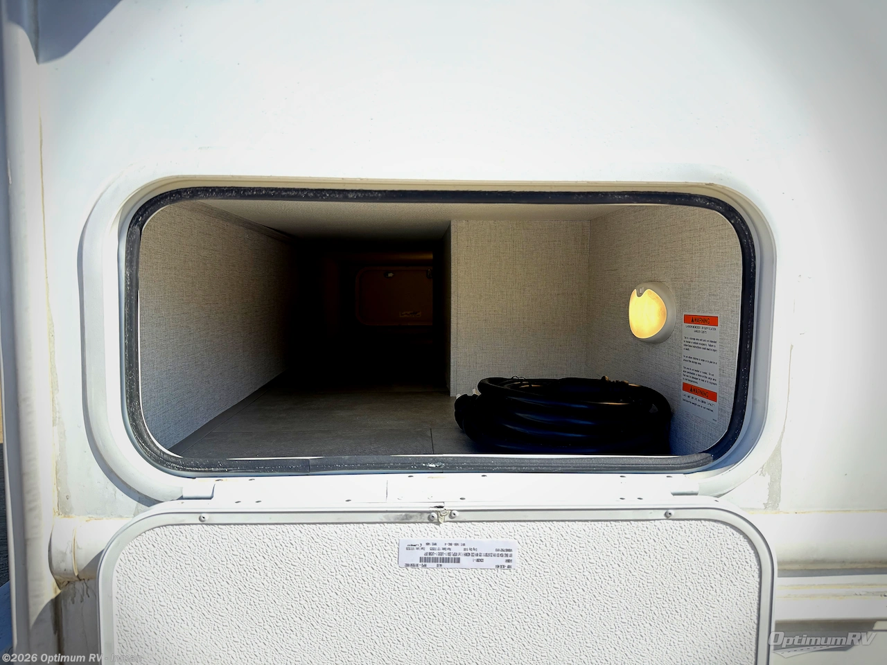 This compact, yet cozy coach is perfect for trips to the campground each weekend! Once you've reached your destination, you can set up the 11' power awning, unload the exterior storage compartments, and relax in your camp chairs. The two burner gas cooktop and convection microwave with an air fryer will let you make meals each day, and there is a 12V refrigerator to keep food fresh. A flip-up counter is another great feature that will give you more prep space! You can freshen up in the wet bath, grab your night clothes from the closet, then convert the U-shaped dinette into a 54" x 77" bed for a great night's rest!
