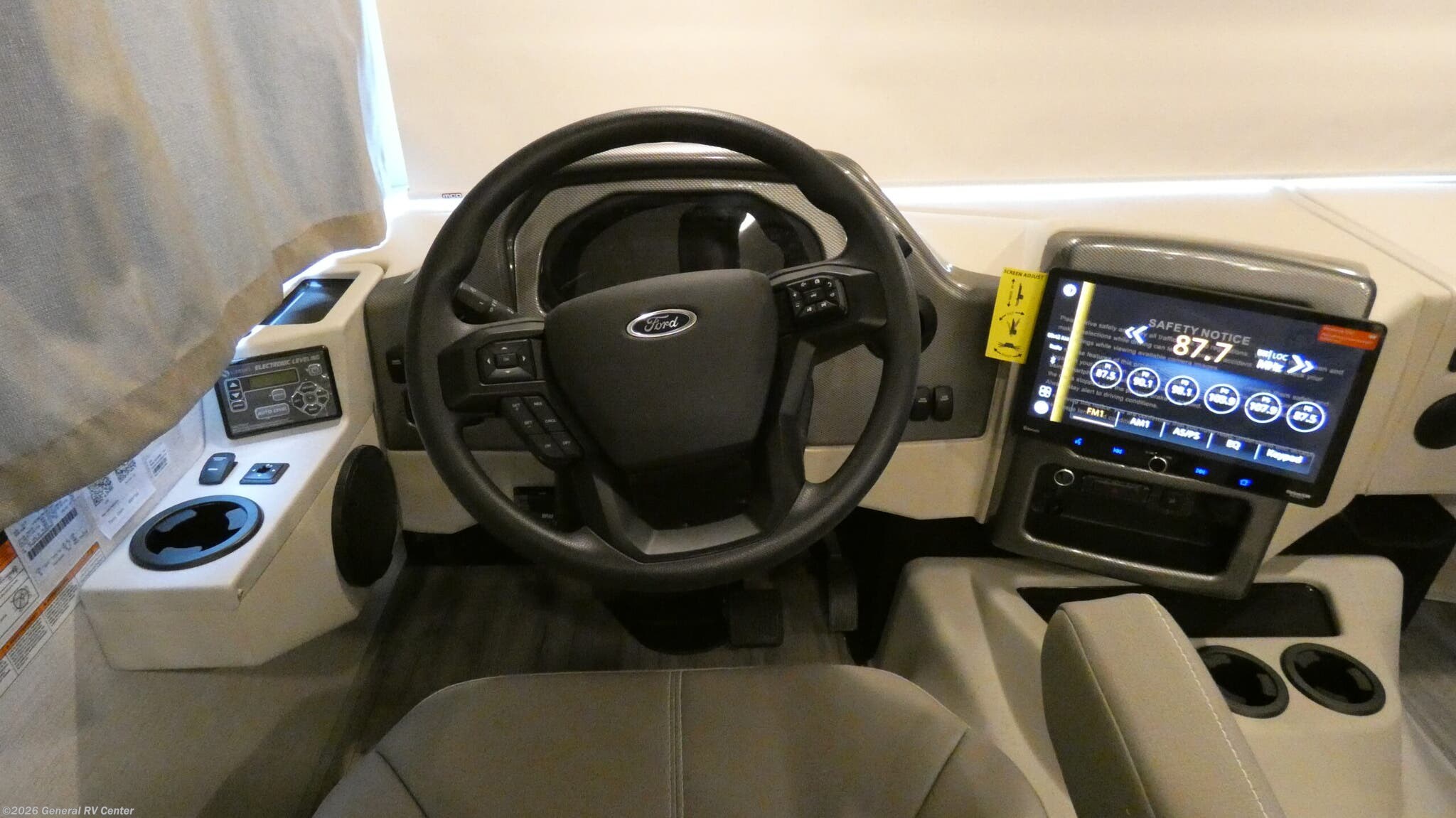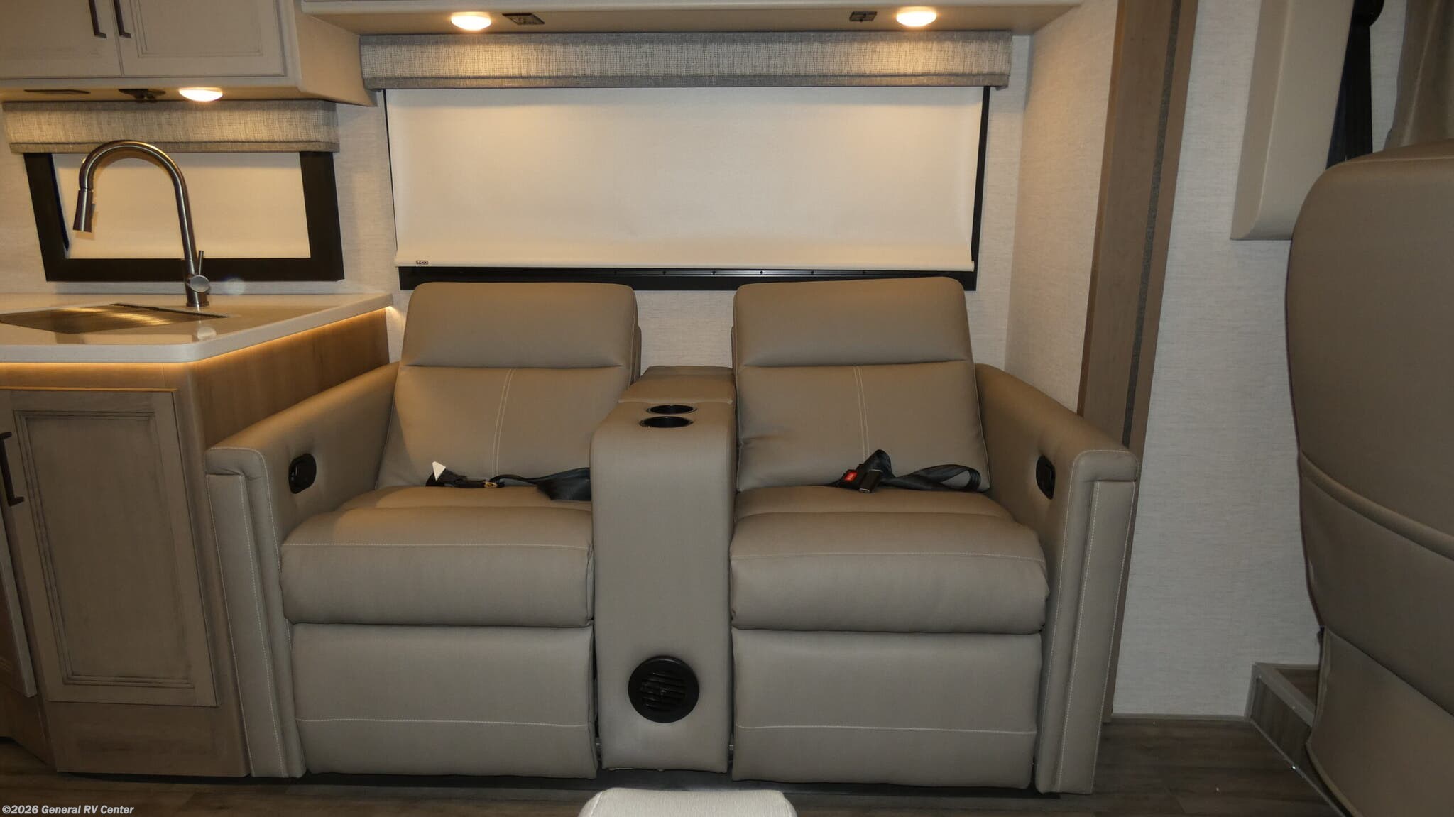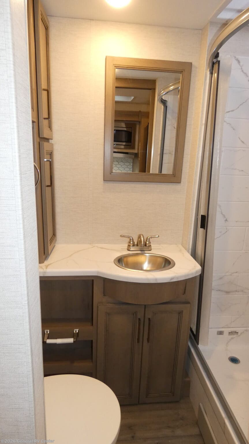 Step into the world of comfort and adventure with the 2026 Thor Motor Coach A.C.E. 29D. This motorhome is designed to make every journey memorable, offering a spacious interior that comfortably sleeps up to eight. The luxurious king bed in the rear bedroom promises restful nights, while the convertible sofa and dinette provide additional sleeping options for family and friends. The front living area invites relaxation with its cozy seating, perfectly positioned for socializing or enjoying entertainment. The heart of this RV is its well-appointed center kitchen, featuring a three-burner cooktop and a mid-size refrigerator that operates on both electric and propane, ensuring your culinary needs are met on the road. The clever floorplan includes a center bath with a shower curtain for convenience and privacy. With a 19 ft. powered retractable awning, you can extend your living space outdoors, making it ideal for enjoying scenic views and fresh air. Built on a robust Ford F53 chassis, the A.C.E. 29D combines power and reliability, boasting a 350-horsepower engine and a tow capacity of 8,000 pounds. Whether you're a seasoned traveler or new to RVing, this motorhome offers the perfect blend of style, functionality, and comfort. Visit your nearest General RV dealership to explore this remarkable model in person.
