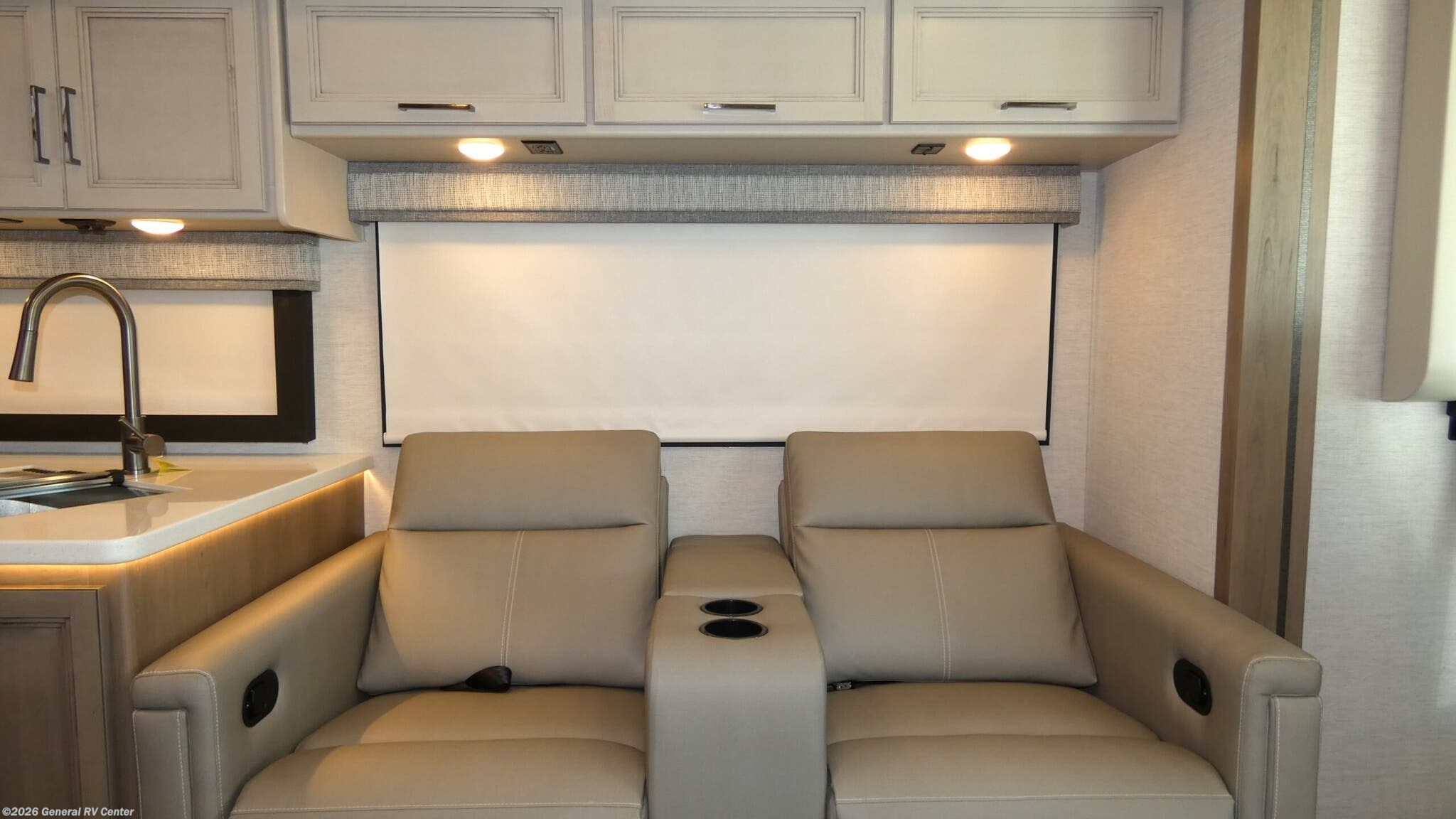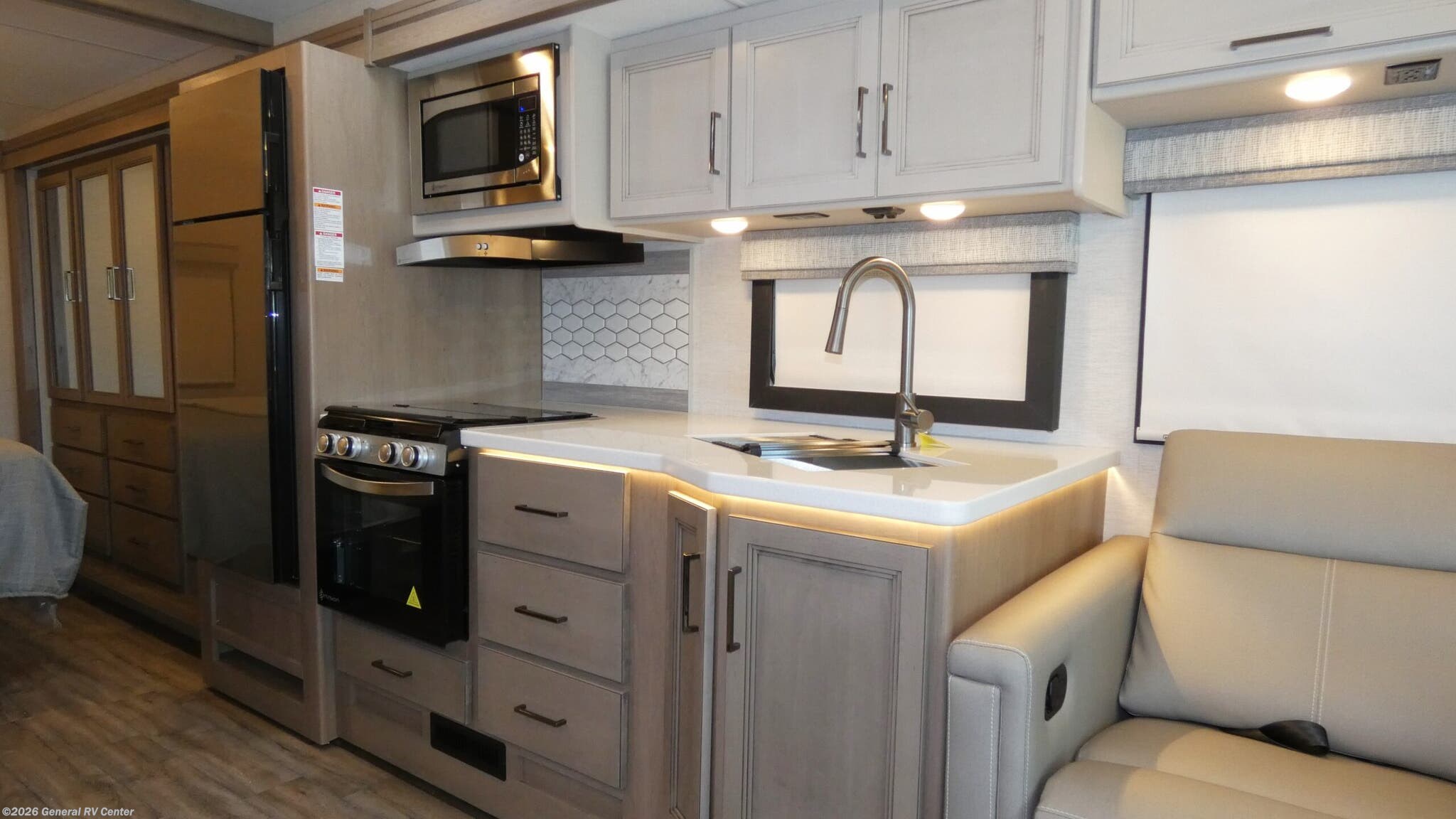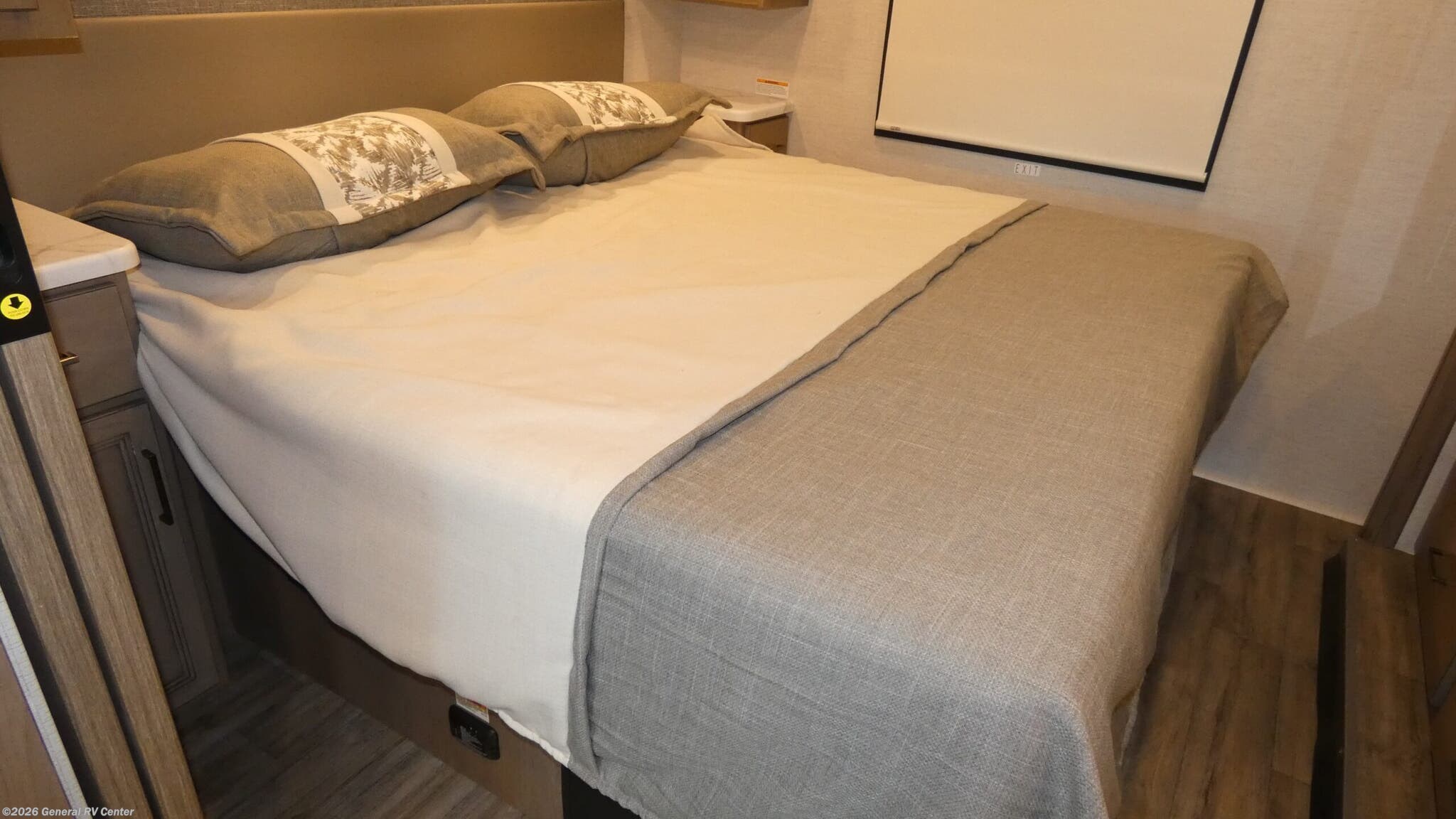 Step into the world of comfort and adventure with the 2026 Thor Motor Coach A.C.E. 29D. This motorhome is designed to make every journey memorable, offering a spacious interior that comfortably sleeps up to eight. The luxurious king bed in the rear bedroom promises restful nights, while the convertible sofa and dinette provide additional sleeping options for family and friends. The front living area invites relaxation with its cozy seating, perfectly positioned for socializing or enjoying entertainment. The heart of this RV is its well-appointed center kitchen, featuring a three-burner cooktop and a mid-size refrigerator that operates on both electric and propane, ensuring your culinary needs are met on the road. The clever floorplan includes a center bath with a shower curtain for convenience and privacy. With a 19 ft. powered retractable awning, you can extend your living space outdoors, making it ideal for enjoying scenic views and fresh air. Built on a robust Ford F53 chassis, the A.C.E. 29D combines power and reliability, boasting a 350-horsepower engine and a tow capacity of 8,000 pounds. Whether you're a seasoned traveler or new to RVing, this motorhome offers the perfect blend of style, functionality, and comfort. Visit your nearest General RV dealership to explore this remarkable model in person.