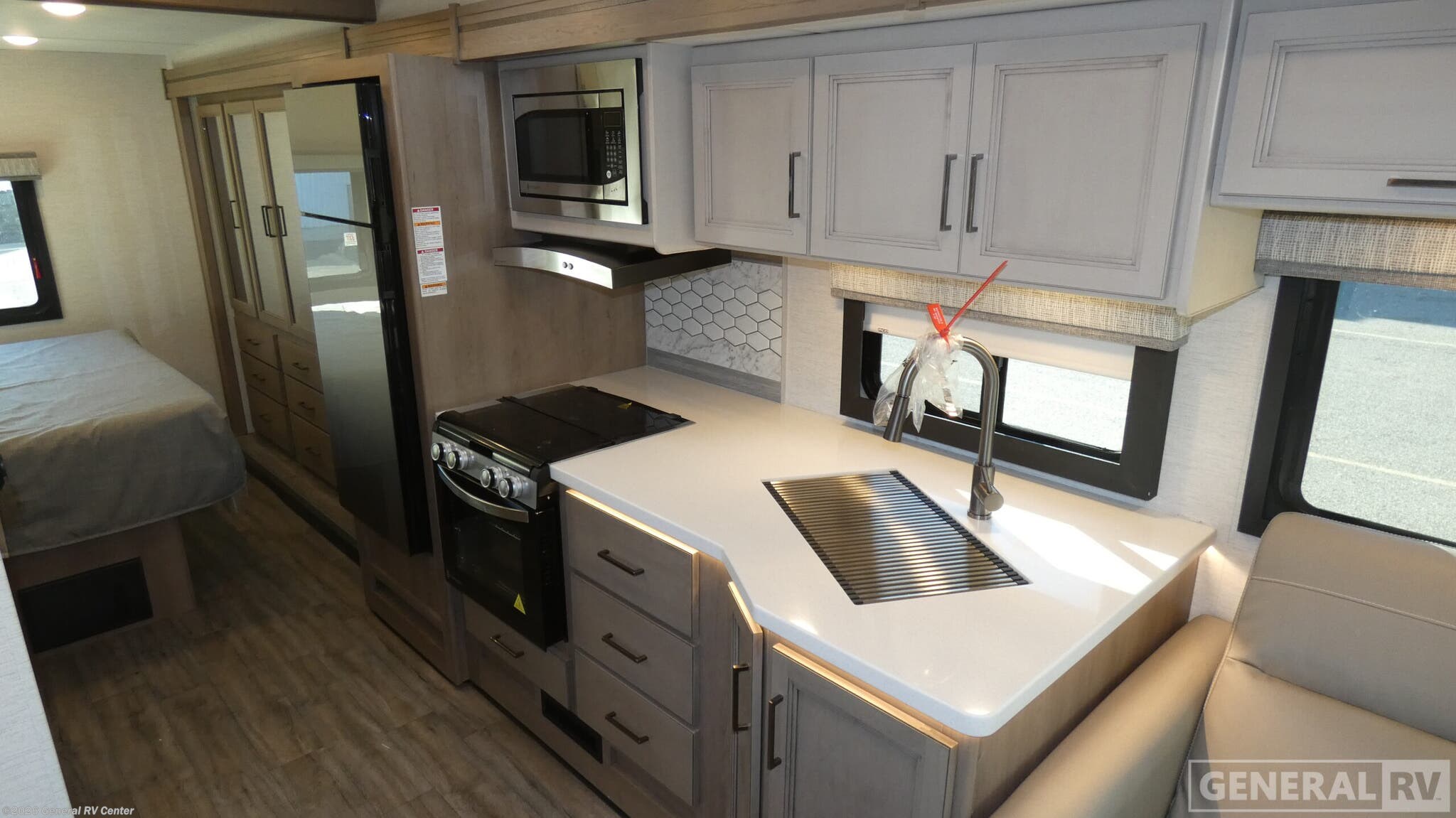 Step into the world of comfort and adventure with the 2026 Thor Motor Coach A.C.E. 29D. This motorhome is designed to make every journey memorable, offering a spacious interior that comfortably sleeps up to eight. The luxurious king bed in the rear bedroom promises restful nights, while the convertible sofa and dinette provide additional sleeping options for family and friends. The front living area invites relaxation with its cozy seating, perfectly positioned for socializing or enjoying entertainment. The heart of this RV is its well-appointed center kitchen, featuring a three-burner cooktop and a mid-size refrigerator that operates on both electric and propane, ensuring your culinary needs are met on the road. The clever floorplan includes a center bath with a shower curtain for convenience and privacy. With a 19 ft. powered retractable awning, you can extend your living space outdoors, making it ideal for enjoying scenic views and fresh air. Built on a robust Ford F53 chassis, the A.C.E. 29D combines power and reliability, boasting a 350-horsepower engine and a tow capacity of 8,000 pounds. Whether you're a seasoned traveler or new to RVing, this motorhome offers the perfect blend of style, functionality, and comfort. Visit your nearest General RV dealership to explore this remarkable model in person.