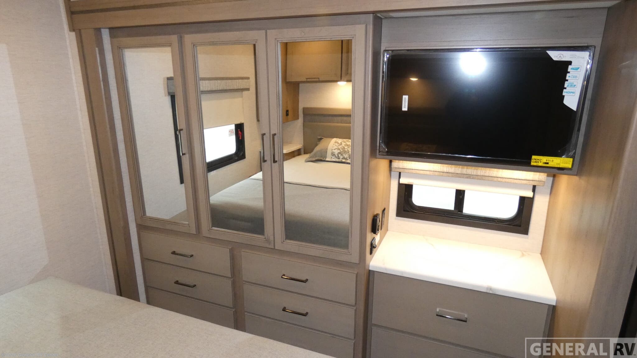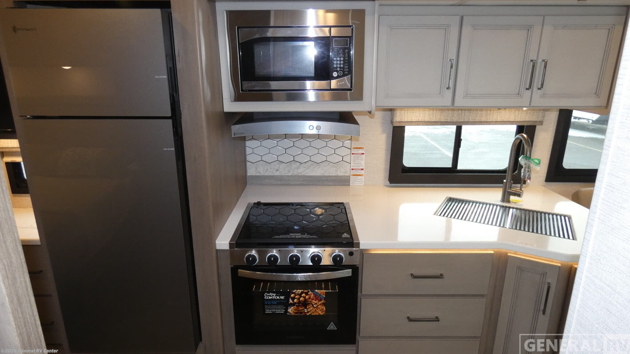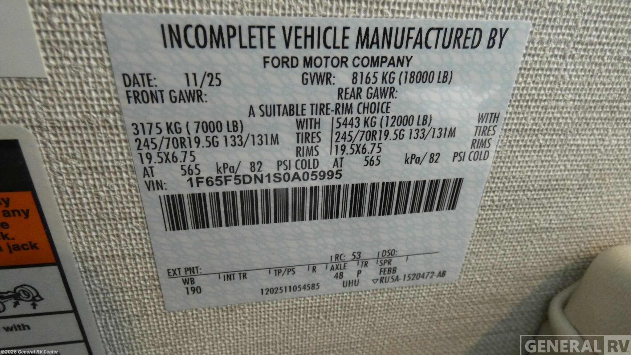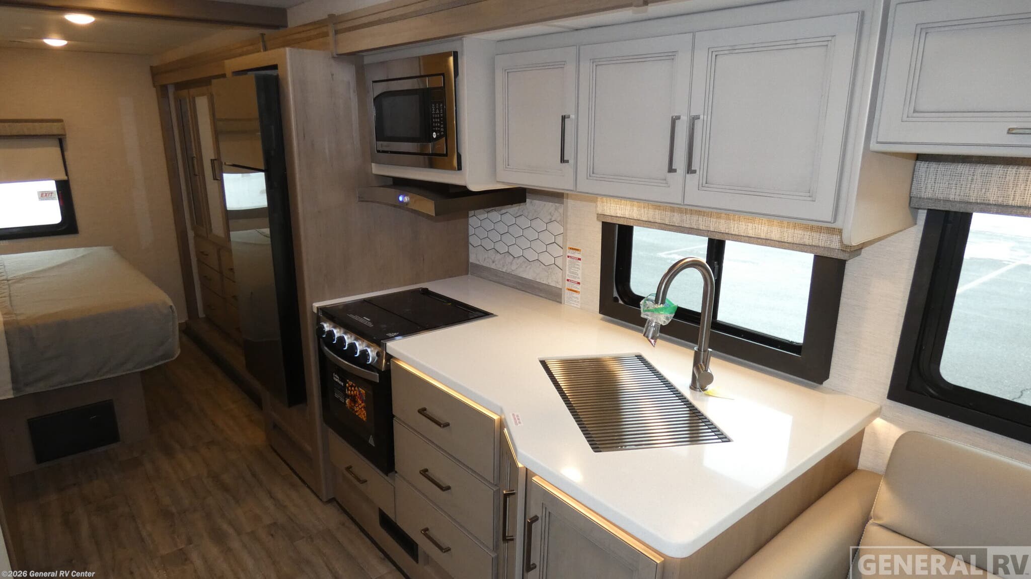 Step into the world of comfort and adventure with the 2026 Thor Motor Coach A.C.E. 29D. This motorhome is designed to make every journey memorable, offering a spacious interior that comfortably sleeps up to eight. The luxurious king bed in the rear bedroom promises restful nights, while the convertible sofa and dinette provide additional sleeping options for family and friends. The front living area invites relaxation with its cozy seating, perfectly positioned for socializing or enjoying entertainment. The heart of this RV is its well-appointed center kitchen, featuring a three-burner cooktop and a mid-size refrigerator that operates on both electric and propane, ensuring your culinary needs are met on the road. The clever floorplan includes a center bath with a shower curtain for convenience and privacy. With a 19 ft. powered retractable awning, you can extend your living space outdoors, making it ideal for enjoying scenic views and fresh air. Built on a robust Ford F53 chassis, the A.C.E. 29D combines power and reliability, boasting a 350-horsepower engine and a tow capacity of 8,000 pounds. Whether you're a seasoned traveler or new to RVing, this motorhome offers the perfect blend of style, functionality, and comfort. Visit your nearest General RV dealership to explore this remarkable model in person.