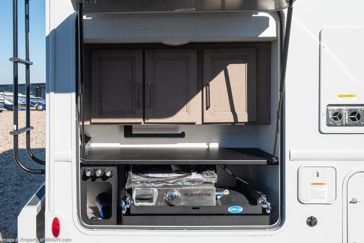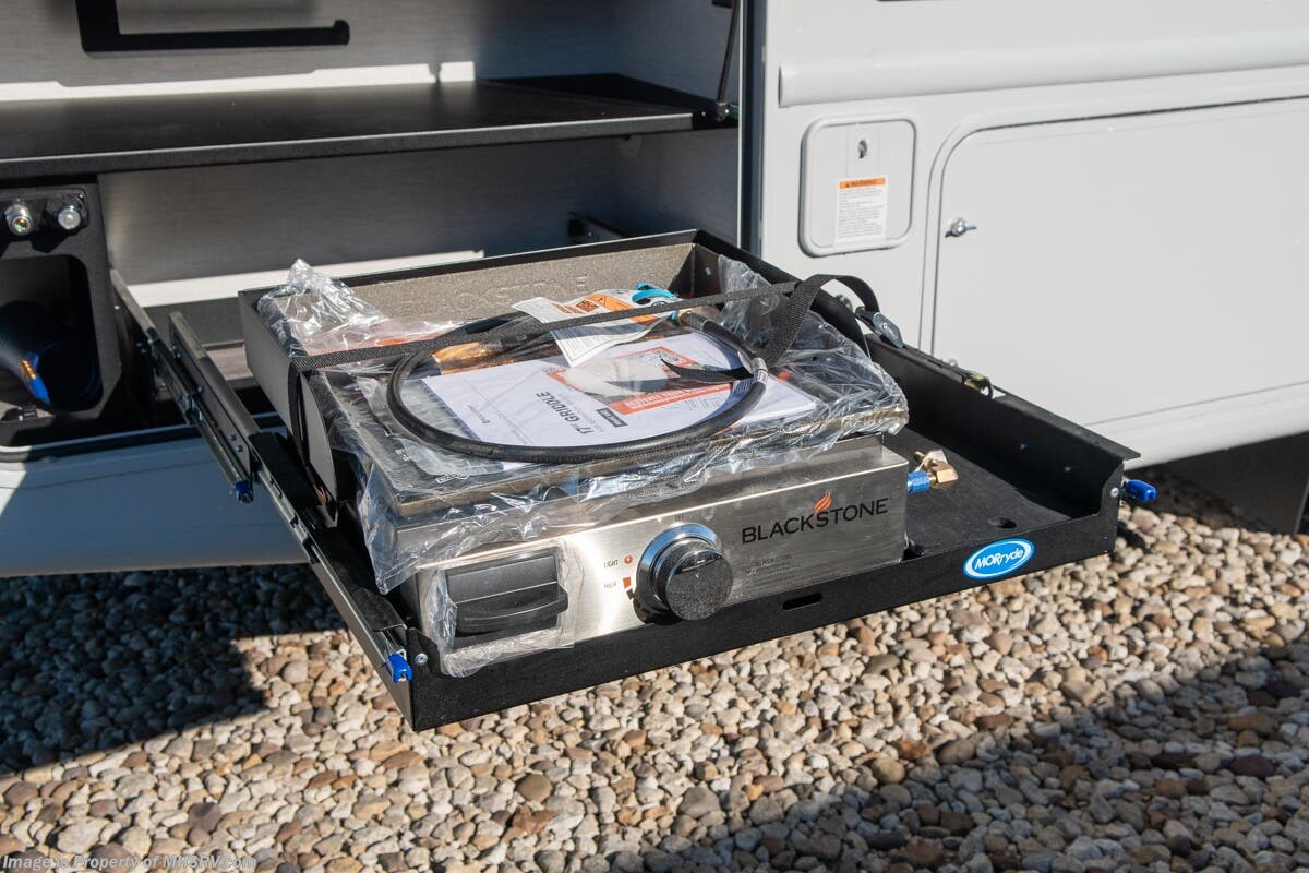 Awning, Backup Monitor, External Shower, Leveling Jacks, Outside Entertainment Center, Outside Kitchen, Slideout, Slide-out Awning -