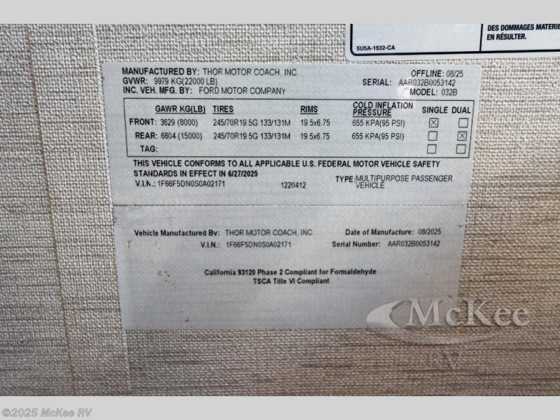Request More Info on this 2026 Thor Motor Coach ACE 32B Offered for sale by McKee RV