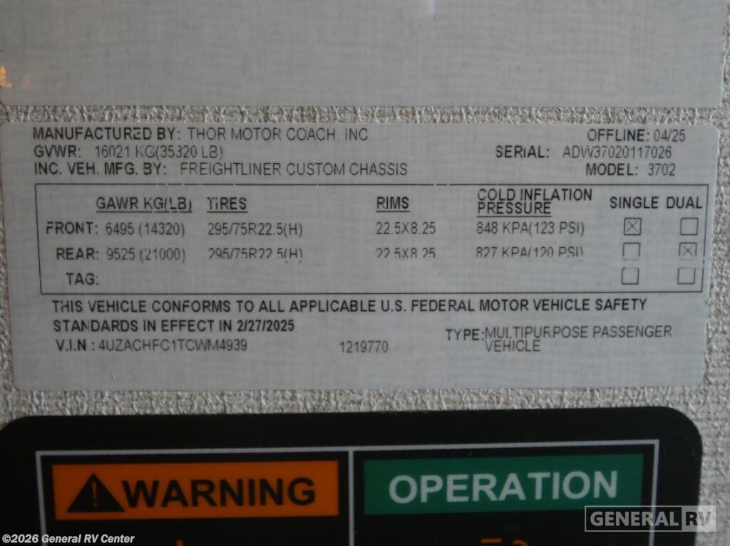 Request More Info on this 2026 Thor Motor Coach Aria 3702 Offered for sale by General RV Center