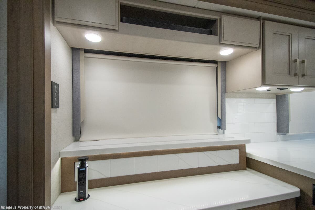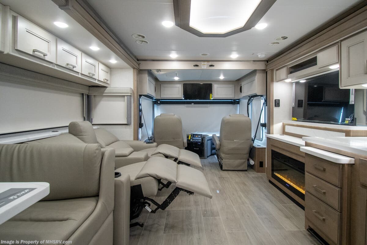 - 400 Watt Additional Solar Charging System Shop hundreds of motorhomes including Diesel Pusher RVs at MHSRV! Choose from American Coach Eagle – Dream – Entegra Coach Cornerstone – Anthem – Aspire – Fleetwood Palisade – Discovery LXE – Holiday Rambler Armada – Foretravel Realm – Foretravel Realm Presidential and more. We also buy and sell quality pre-owned models such Newmar King Aire – Essex – London Aire – Mountain Aire – Dutch Star - Tiffin Zephyr – Allegro Bus – Phaeton – Prevost Liberty Lady – Millennium - Marathon – Newell and much more. Visit for our complete line-up and the sale prices that have made us the #1 volume selling motor home dealership in the world 12 years in a row! About This RV This RV is approximately 37 feet 8 inches in length and features (3) slide-out rooms, drop down overhead bunk, fireplace, king size Tilt-A-View inclining bed, residential refrigerator, solid surface counter tops and stack washer/dryer. The Aria is powered by a Cummins 360HP diesel engine, Freightliner XC-R raised rail chassis, Allison automatic transmission Air-Ride suspension and features automatic leveling jacks with touch pad controls, touchscreen dash radio with GPS, tile floors and much more. About Us For more details on this unit, our full inventory, brochures, window stickers, videos, photos, and customer reviews, visit or call 800-335-6054 for the Texas location or 334-288-0331 for our Alabama location. At Motor Home Specialist, we never charge prep or orientation fees. Every new RV sale includes a multi-point inspection, full interior and exterior detail. At our Texas location we also offer a high-pressure rain booth test—an exclusive service in the industry. You'll also receive a comprehensive coach orientation with an MHSRV technician and a complimentary night in our delivery park with full hook-ups at our Texas Location. --Why Pay More? Why Settle for Less?—